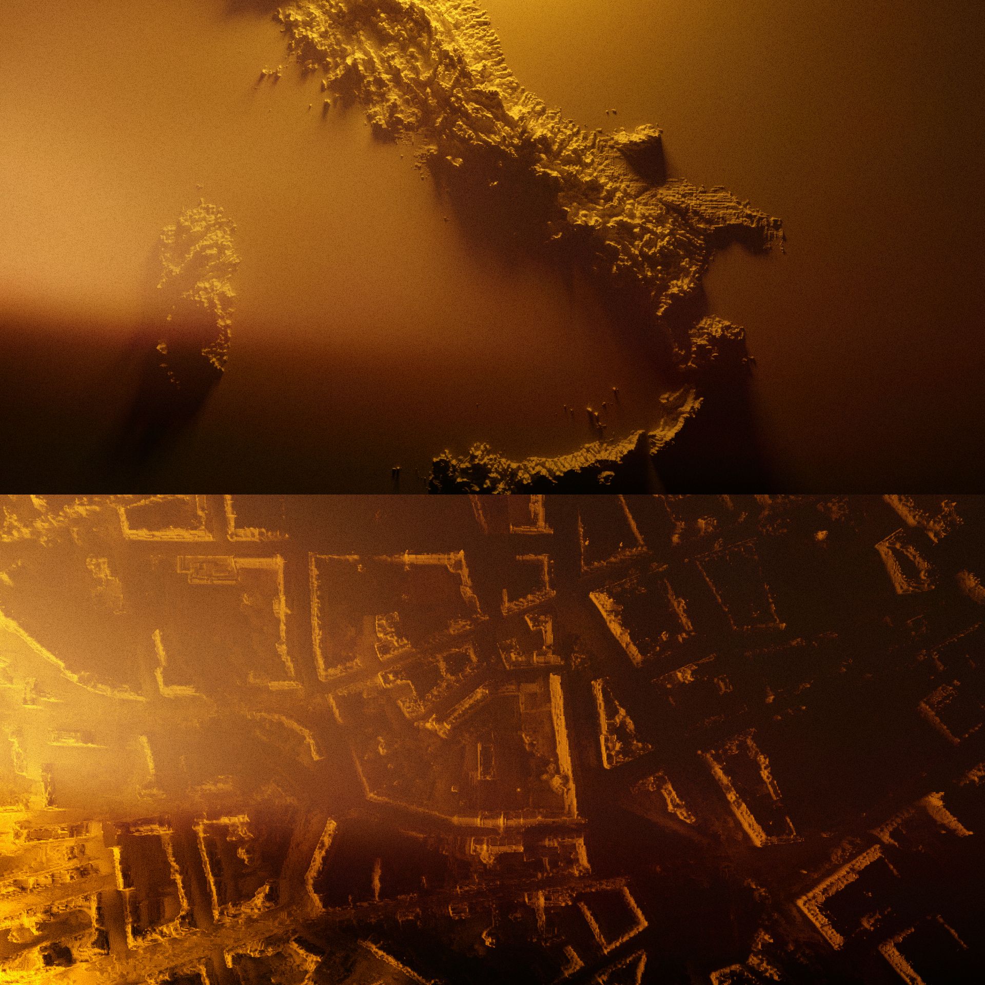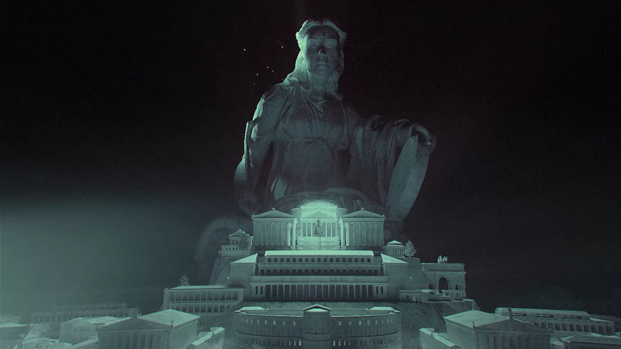 It will be only at the end of the sequence that it's revealed that all these objects are falling past a giant statue of Livia.