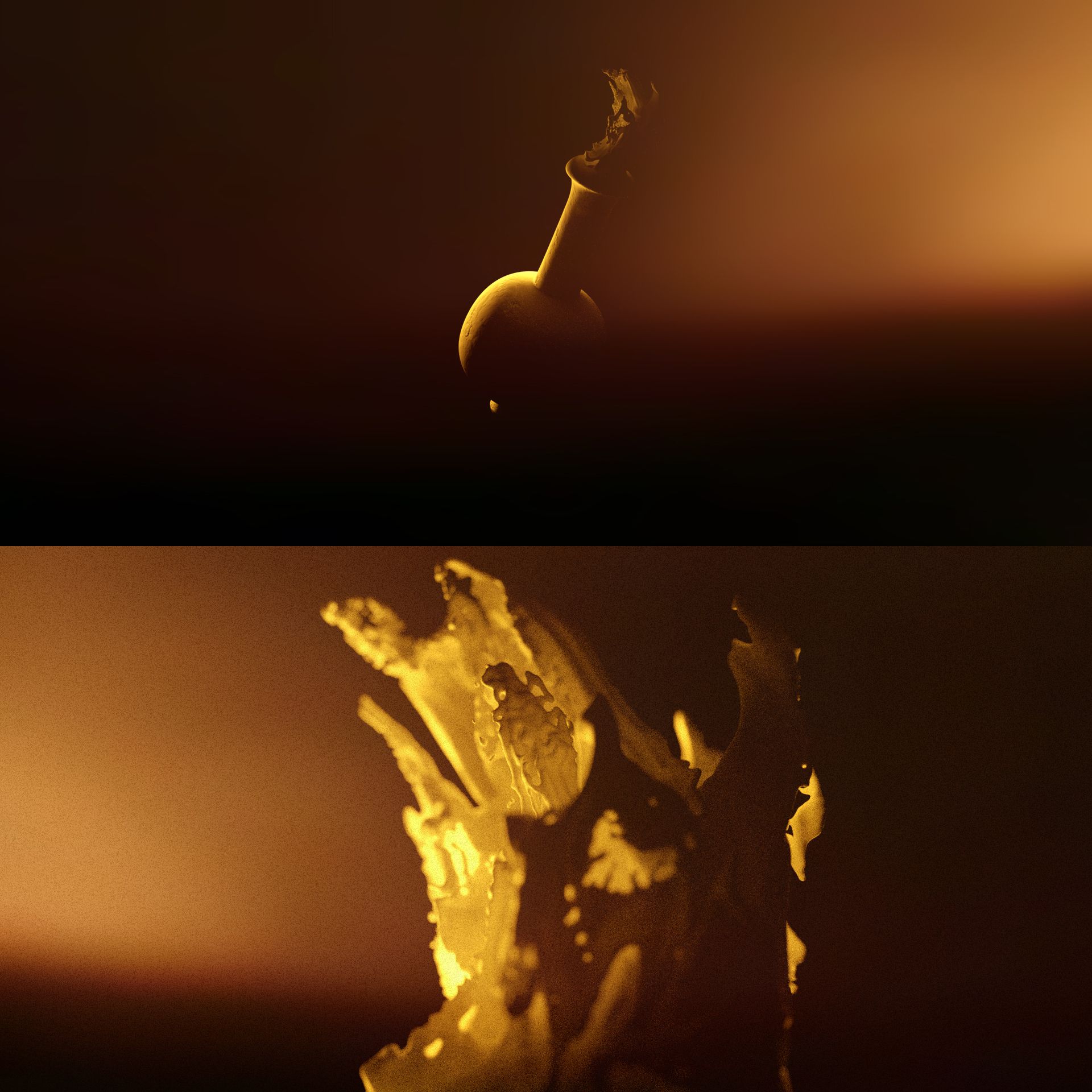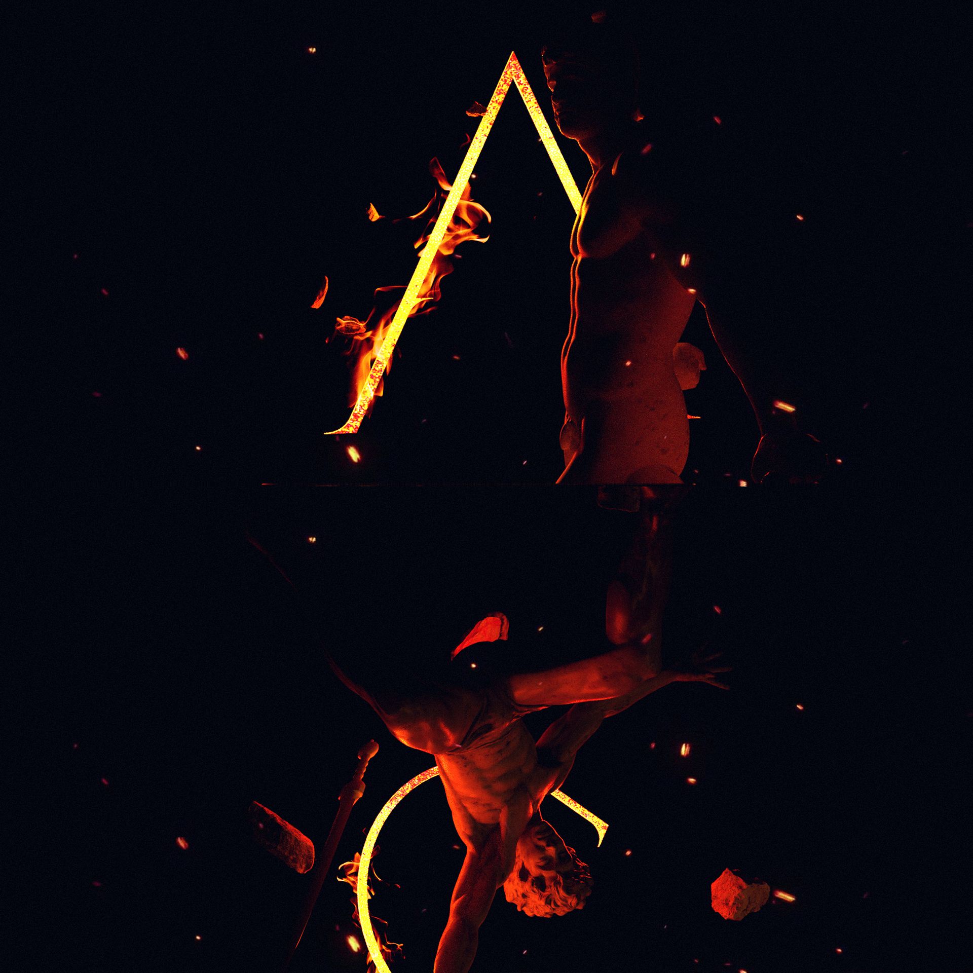 I created the above pitch boards and of the two, option 1 was preferred. The over arching idea was to have elements of ancient Rome falling past the camera. The only light source would be the fire lit logo.