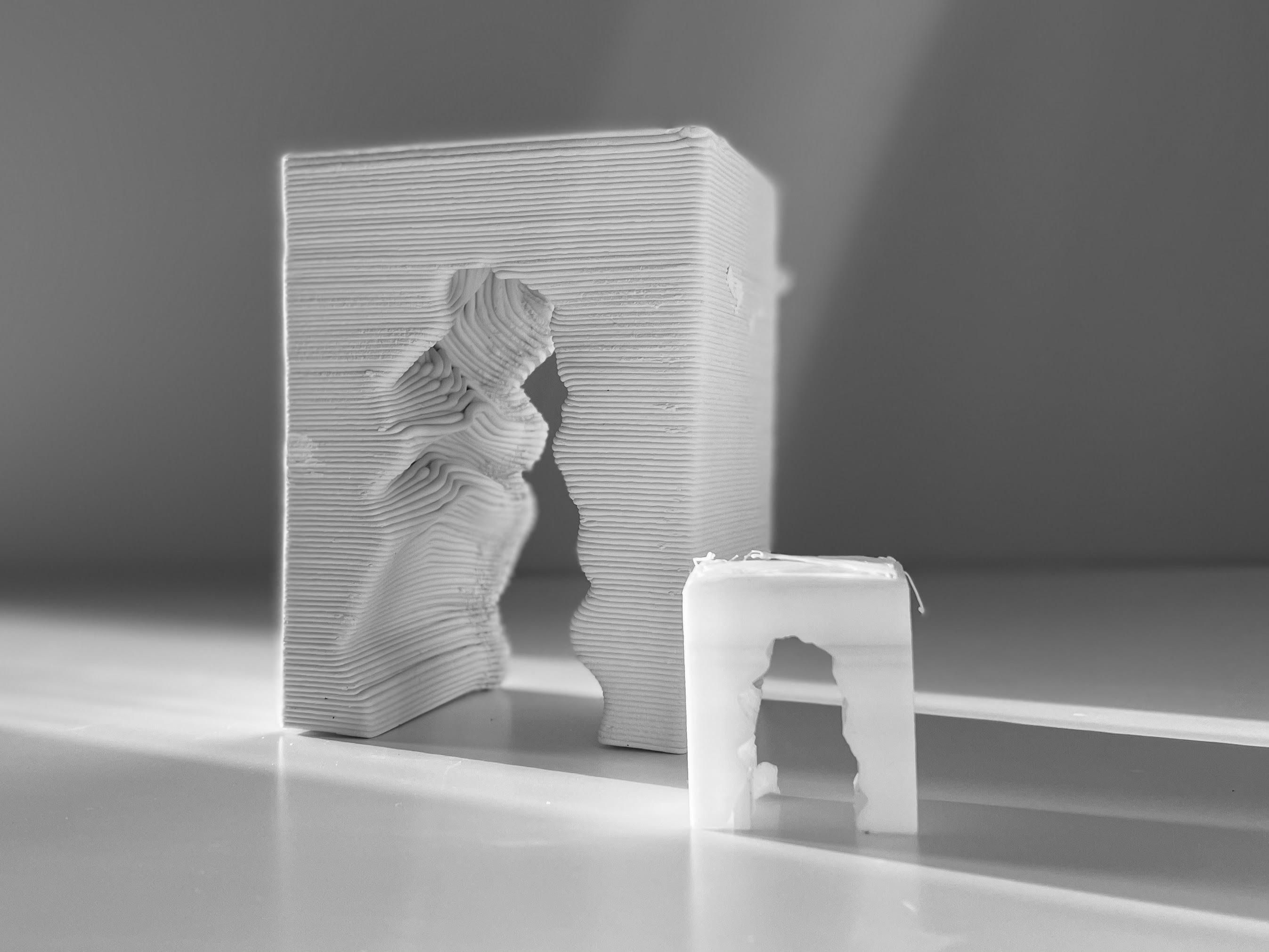 An experimental model of a stool that inspired of the beauty of rock formation formed by water, wind, and streams of light as it seen evident in the desert of Al-Ula.
