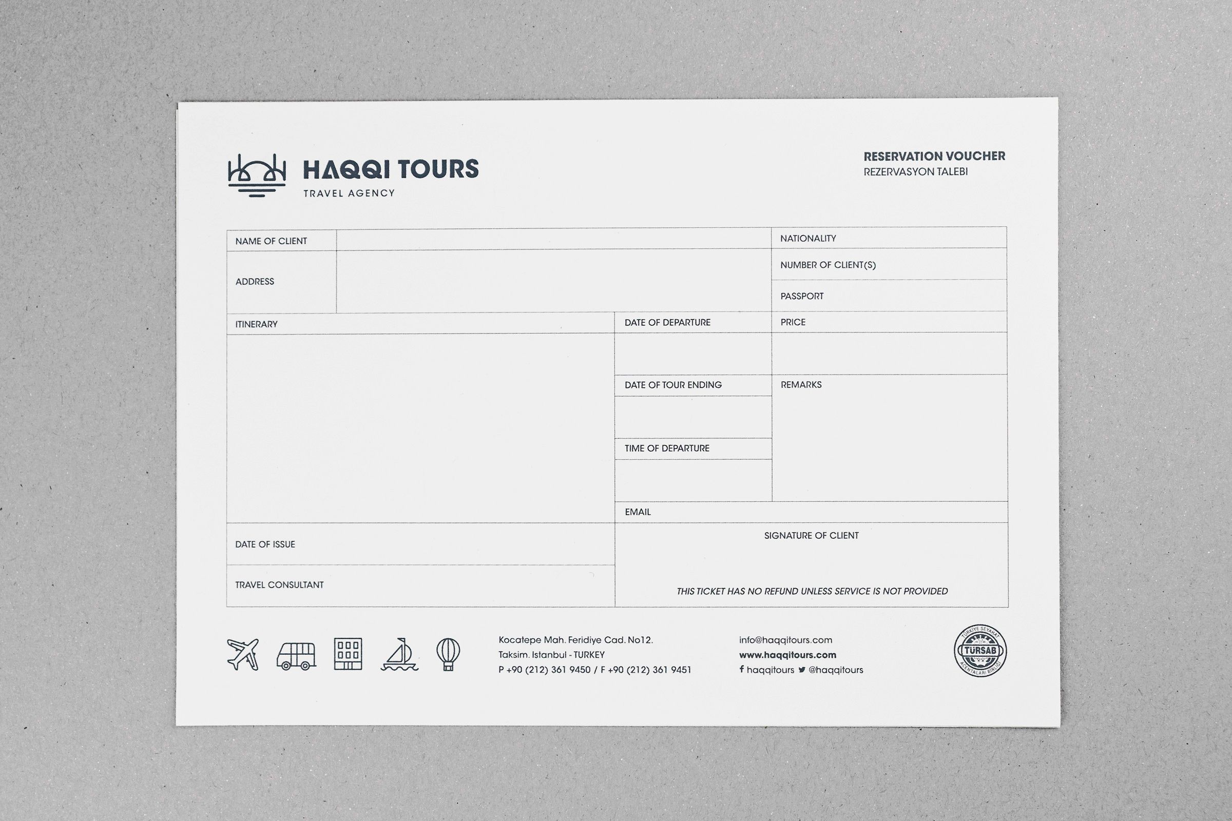 Su director Mohamed Haqqi, confió en nosotros la nueva identidad corporativa, además de un catálogo de servicios y la imagen de varias campañas. Trabajamos en un isotipo que simboliza dos conocidos iconos turísticos del país: el río Bósforo y la basílica de Santa Sofía.
