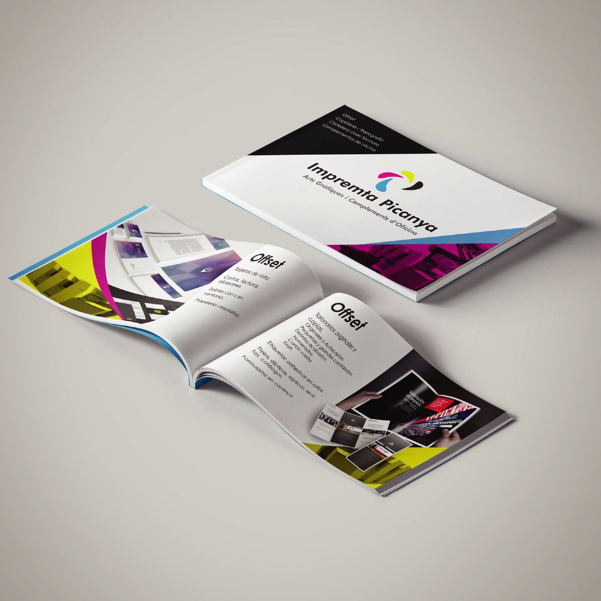 Diferentes diseños para Impremta Picanya. Diseño de catálogo de productos, lona, calendarios y merchandising.