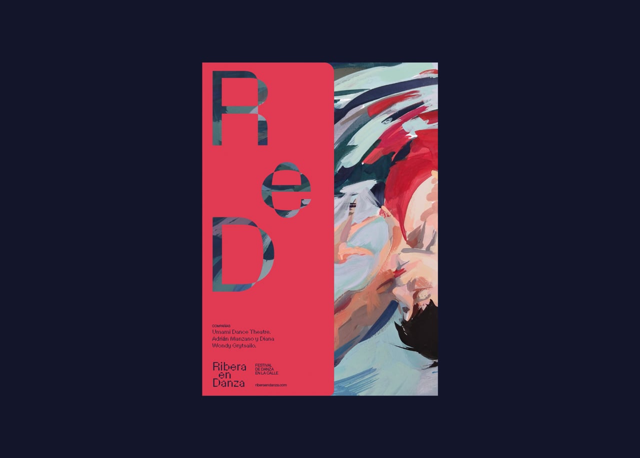 El sistema de carteles estaba basado en una pintura original hecha exclusivamente para el ciclo que encargamos a la artista emergente Irene Carmona Navarro. Esta pintura tenía que reflejar la conexión entre el agua y la danza en un modo poético.