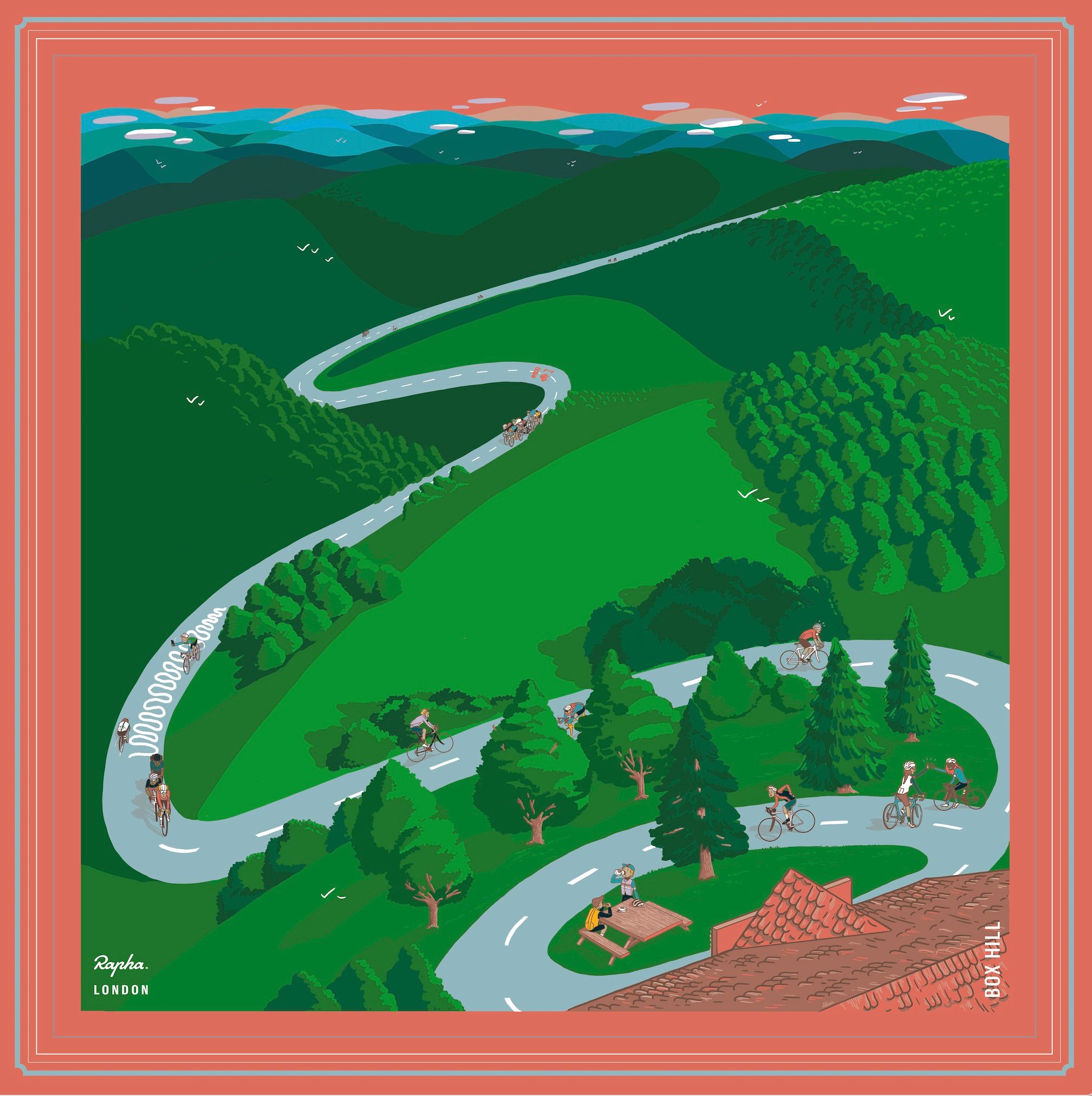 Diseño de colección limitada de pañuelos de seda para la marca Rapha.