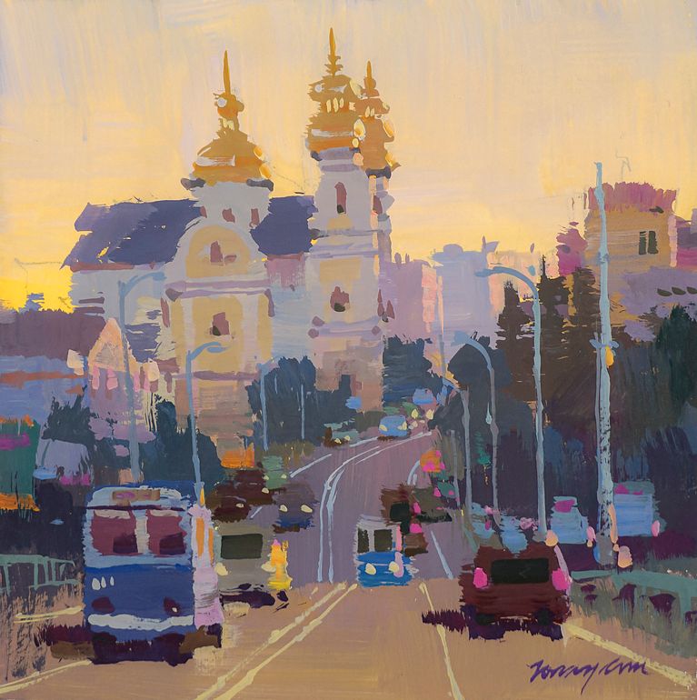 Very poetic. We have the impression of seeing urban landscapes pass by in a stationary bus, through a fogged window in rainy weather. I really like what comes out of it. It should look even better on show