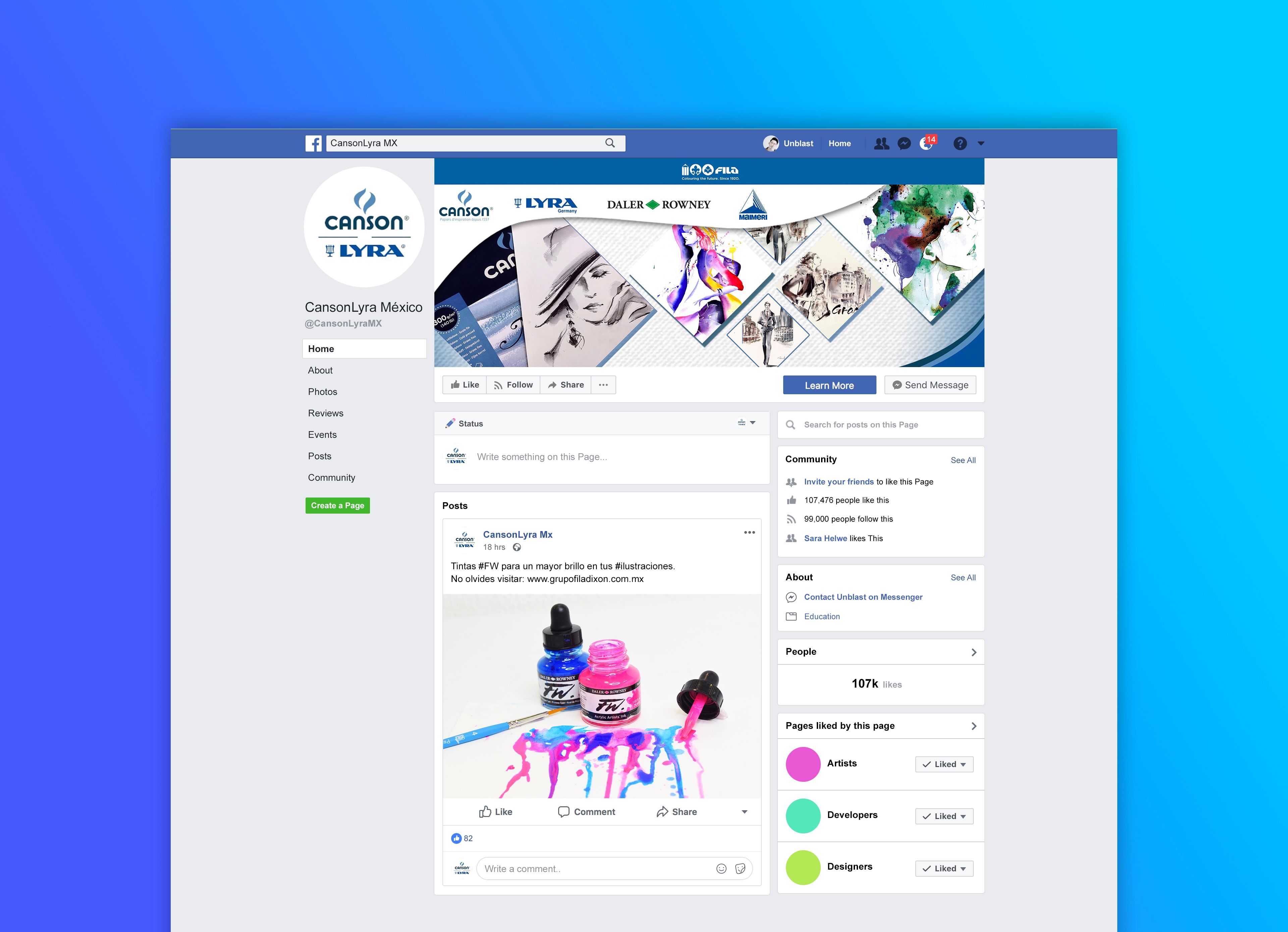 Proyectos Social Media para el Gobierno de Tlalnepantla de Baz y Grupo Fila Dixon. Diseños apegados a comunicar los valores institucionales de cada empresa. Para el Gobierno de Tlalnepantla fui encargado de los diseños digitales de la plantilla de maestros de Bellas Artes y en Dixon de crear contenidos para la cuentas CANSONLYRA_MX para marcas como CANSON, LYRA, DALER N´ROWNEY, SOMERSET, PRINCETON.