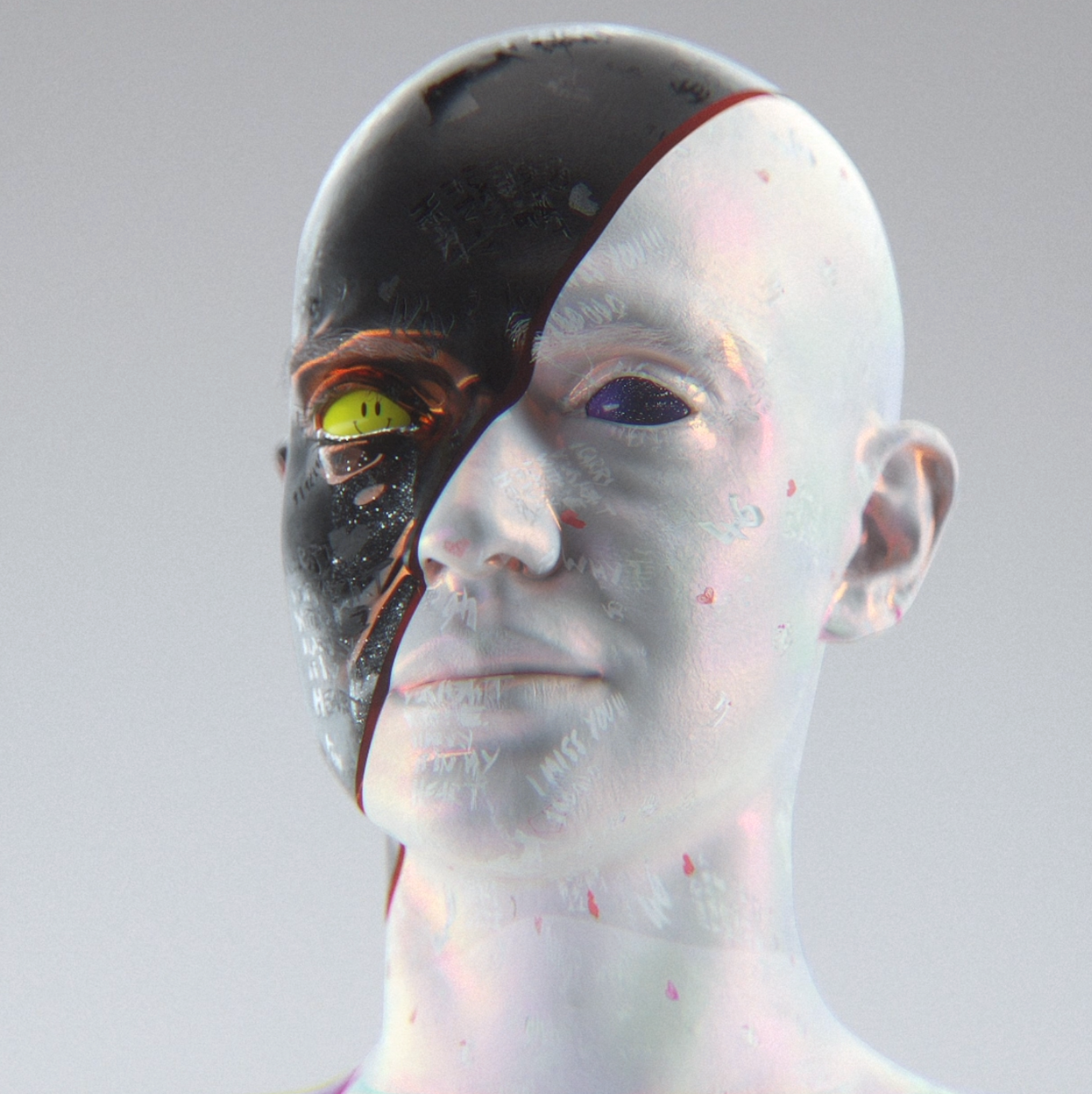 "Smile." ist eine Serie von abstrakten 3D Portraits. Mit verschiedenen Texturen, Ausdrücken und dem Fokus auf den Augen.