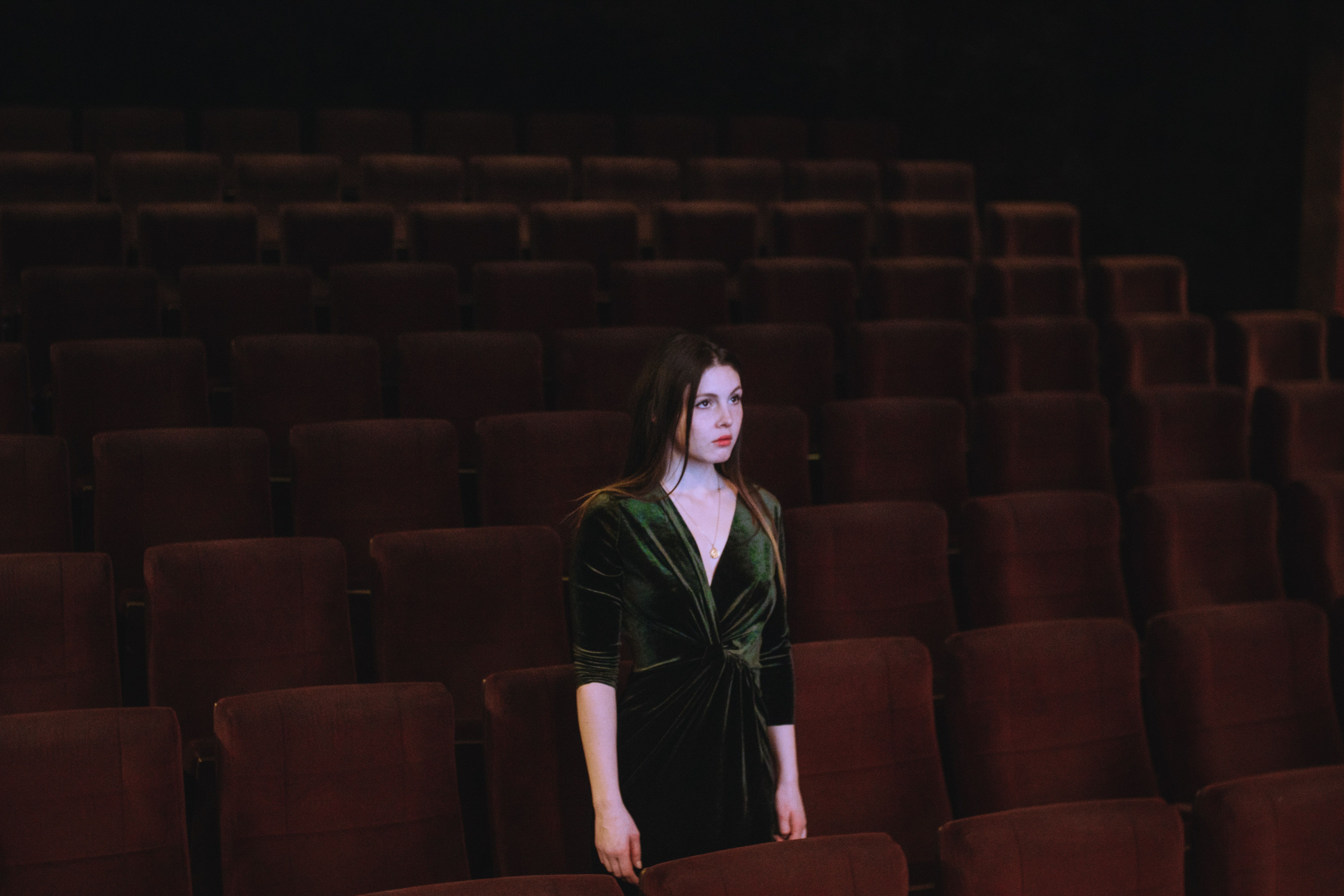 Inspiré par le film Mulholland Drive, ce shooting a été réalisé dans un cinéma vide, en lumière naturelle.
