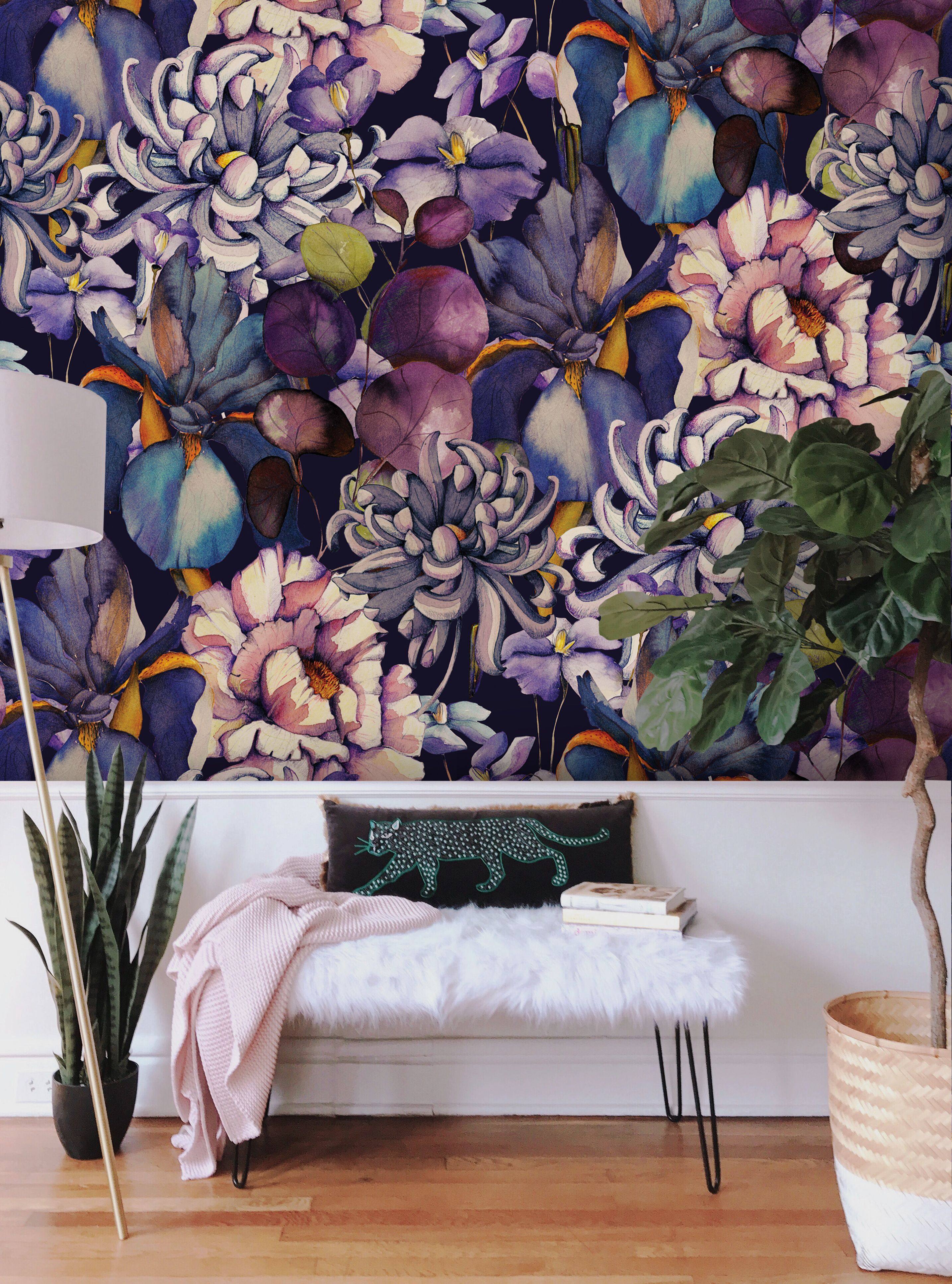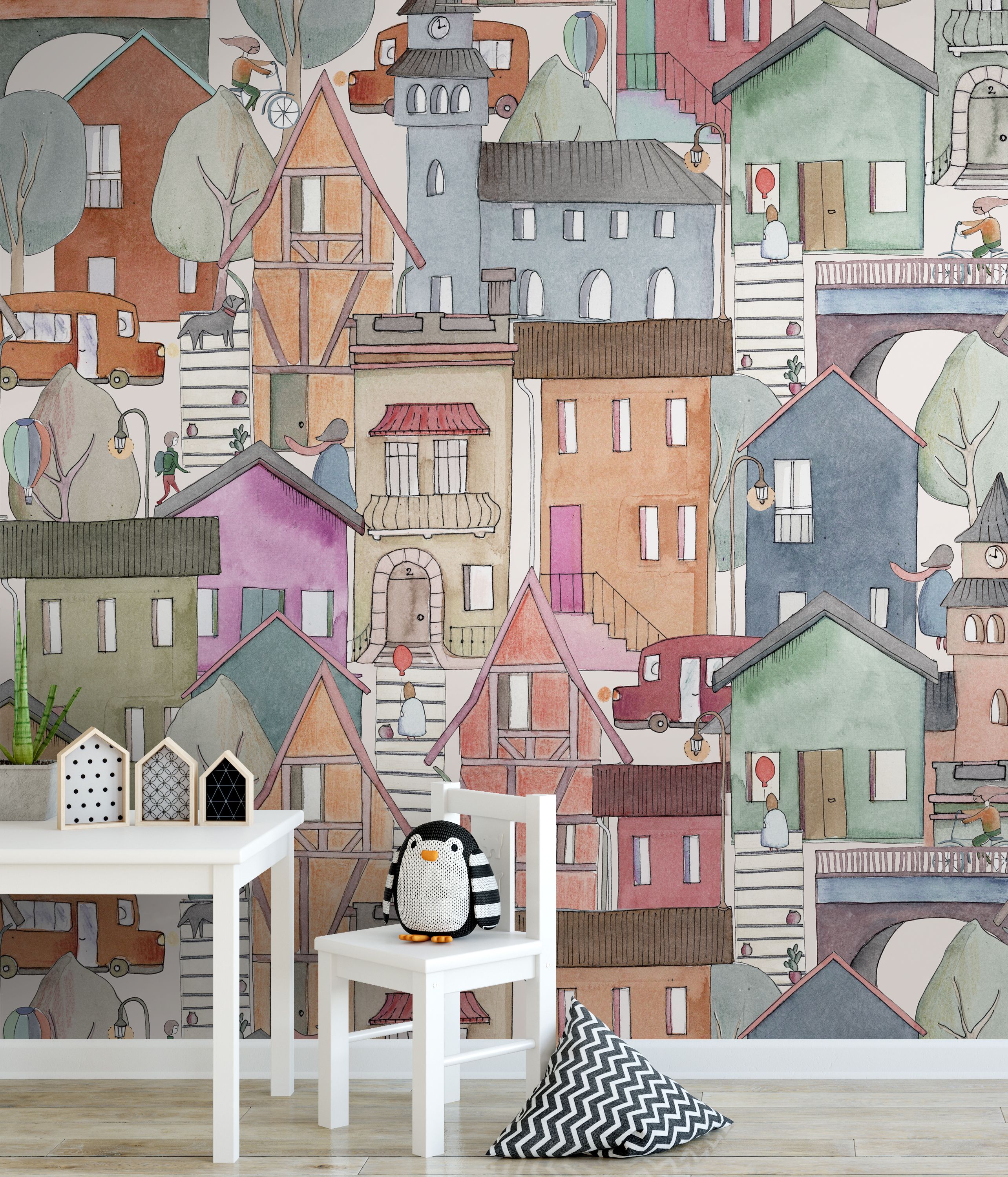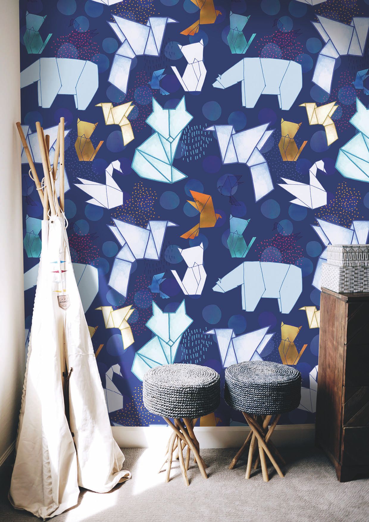 Marta curated one of the four Spring 2022 wallpaper collections: there are large flowers (peonies and chrysanthemums), large foliage in shades of blue-violet, a delicate monochrome bouquet, a fantastic jungle, an imaginary colorful city and lots of origami for the children bedroom.