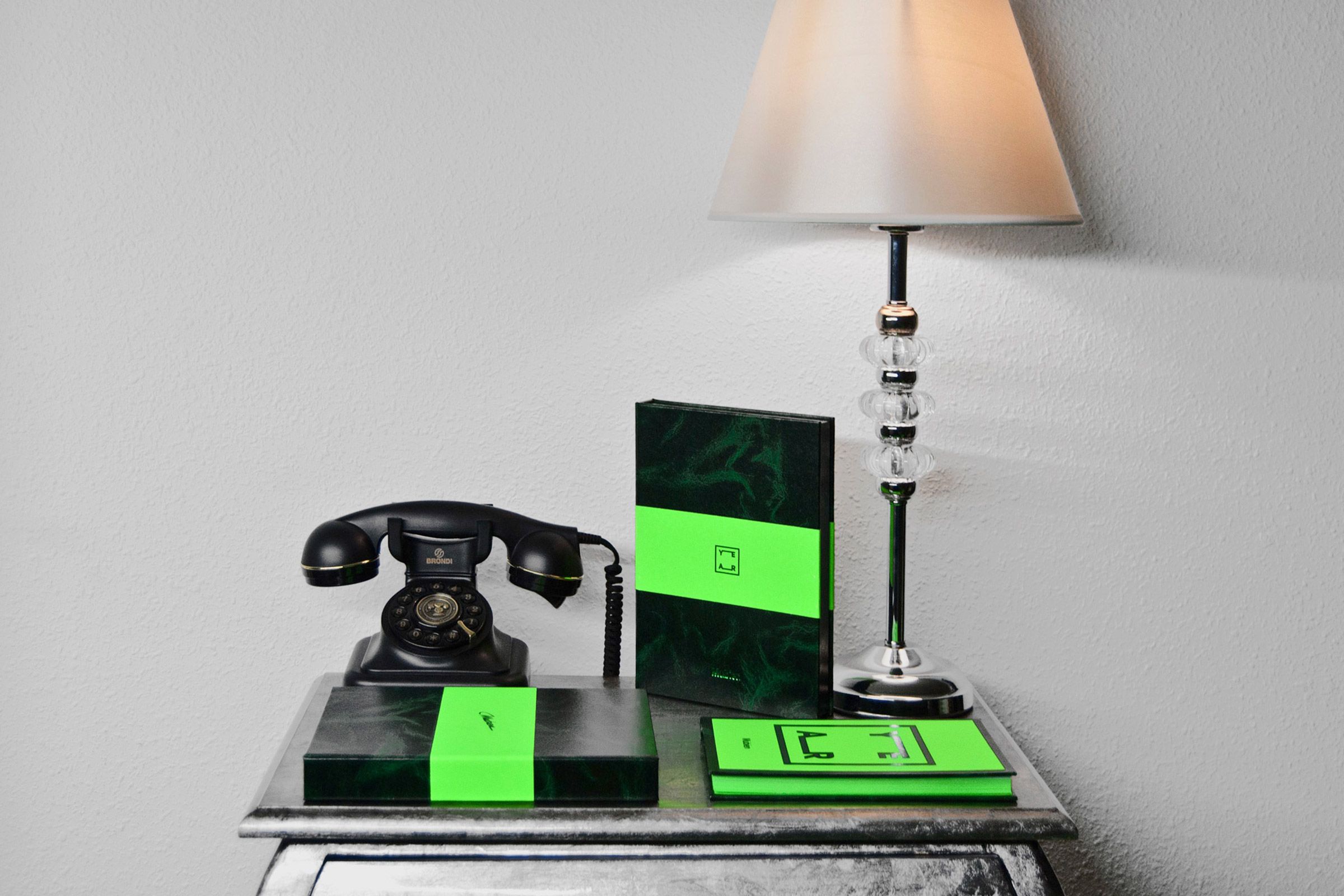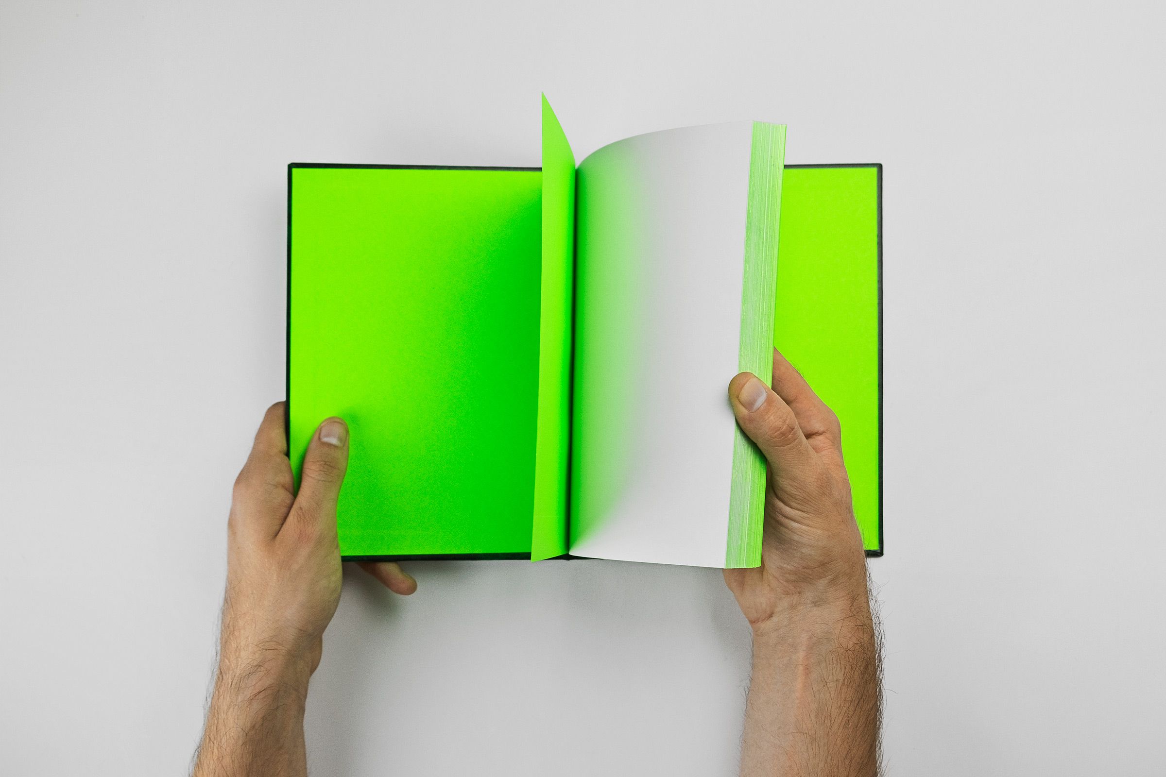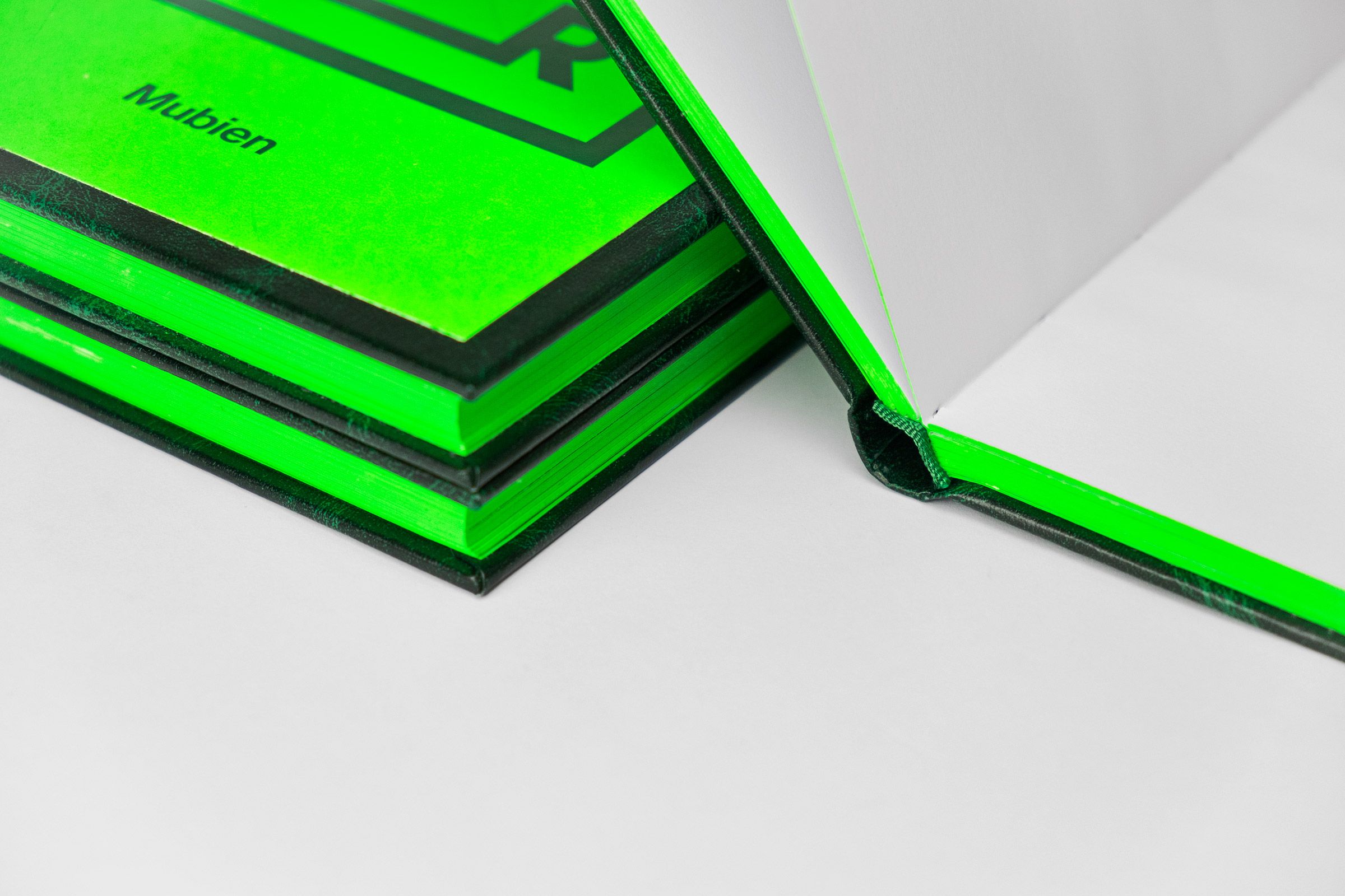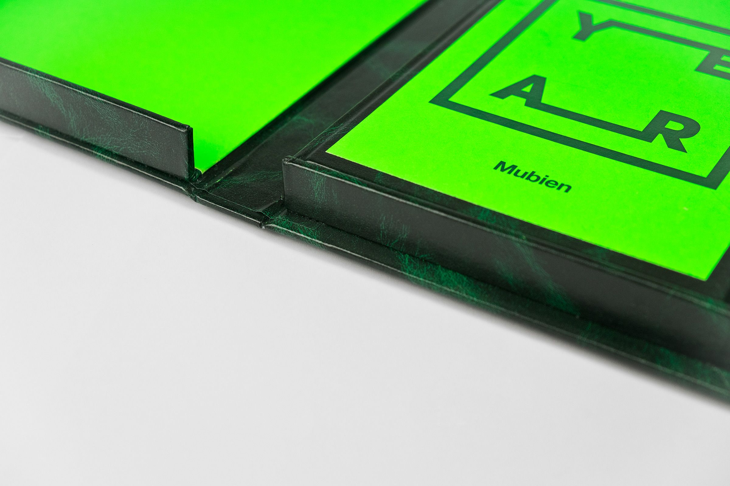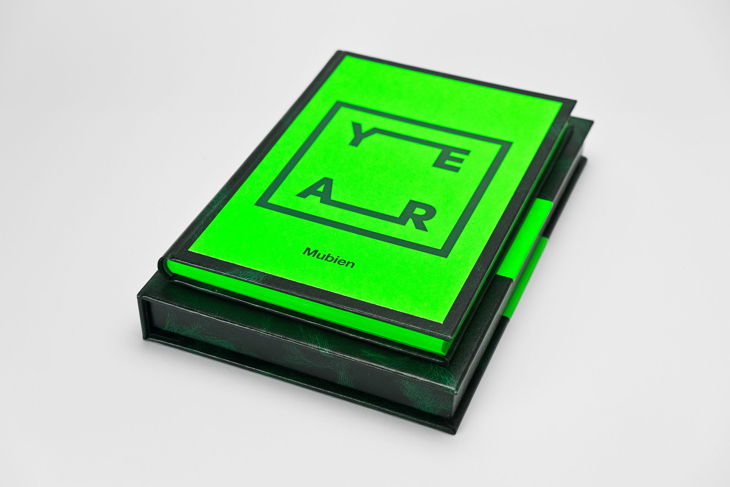 Todo el trabajo fue realizado a mano en nuestro estudio. Utilizamos una combinación de verde neón y “Verde Valencia” con el fin de reflejar la esperanza que tenemos en el proyecto, consiguiendo como resultado una lujosa caja que protege el cuaderno junto a una serie de fichas impresas sobre papel verde neón con mensajes de agradecimiento.