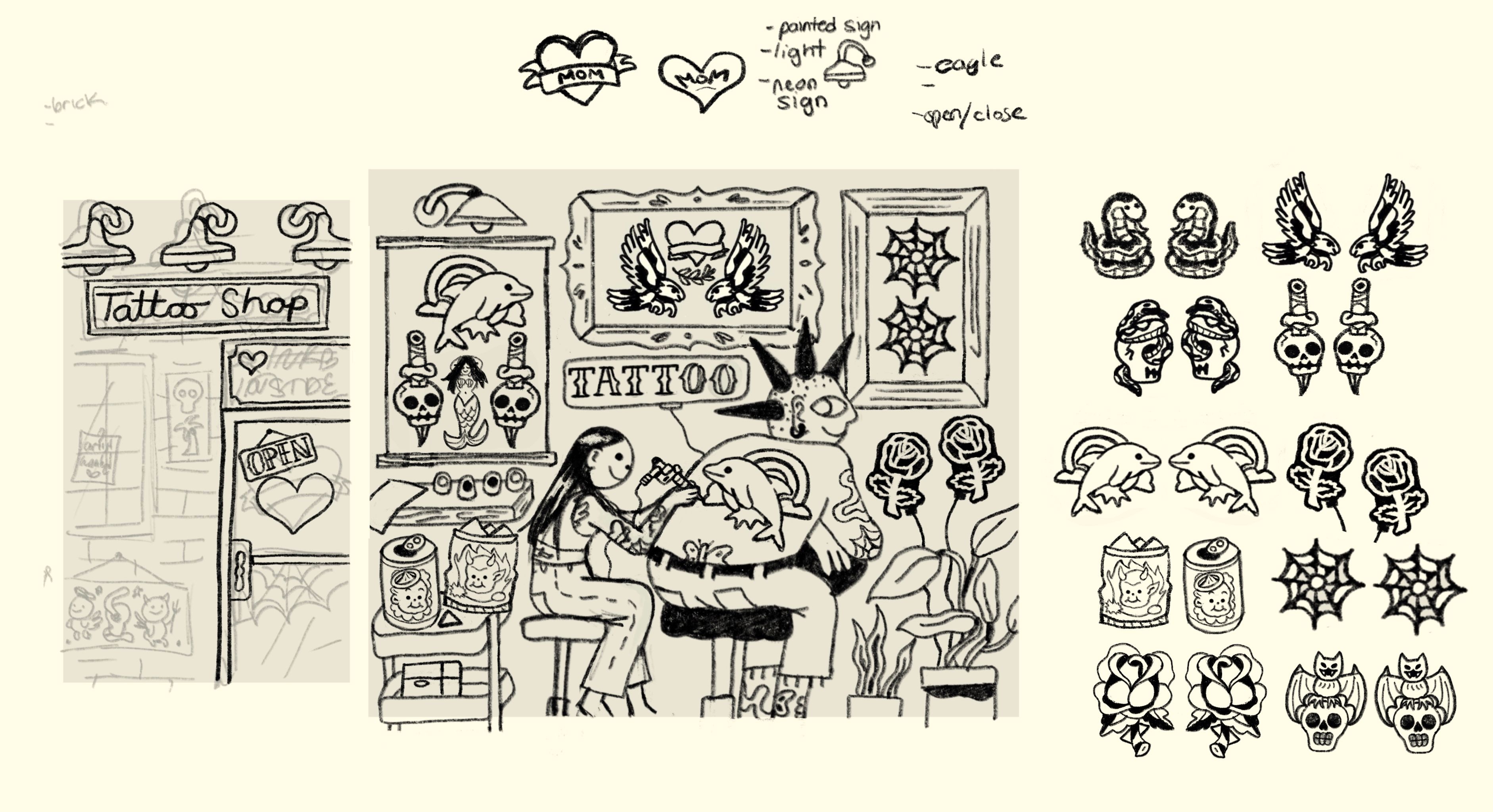 Super Sassy is a company that makes pop-out earrings. Basically, they're cute little earrings that are integrated into an illustrated scene or a fun theme, and they pop out! You add in the hooks and they're ready to wear. This set was for their monthly earring subscription, and the theme was "tattoo parlor". It was so much fun to design all of the earrings!