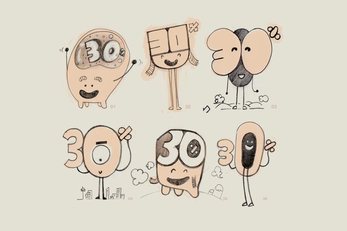 Personajes para un spot de Orange, había que diseñar un personaje que fuese también un "30%" estos son los que más me gustan (el que salió finalmente era feote)