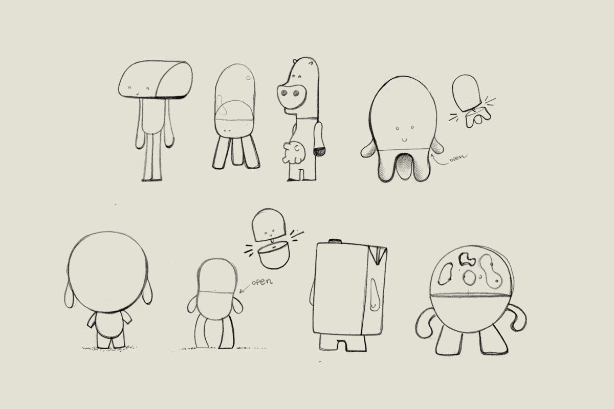 Personajes para Leche Celta, alguno acabó impreso en 3D como prototipo de unos juguetes que se regalaban con los pack de leche.