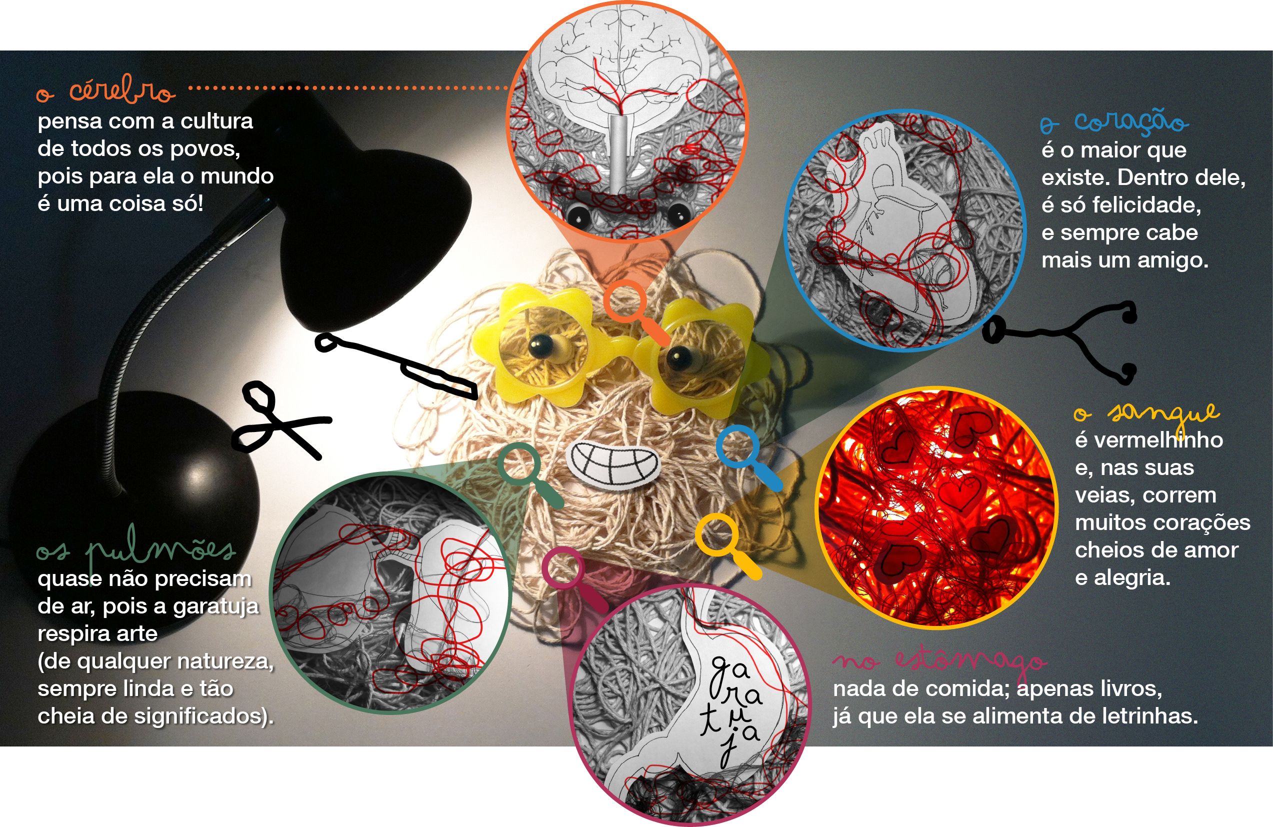 Além da curadoria digital, o Garatujas também criou conteúdo, como o Papo Pá-Pum (uma entrevista lúdica com profissionais do livro de diversos países); a Garapedia (uma minienciclopedia ilustrada); o Olha, Eu Que Fiz! (um zine dedicado a artistas); e animações do Garatujo, um personagem anti-herói.