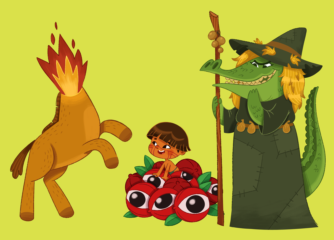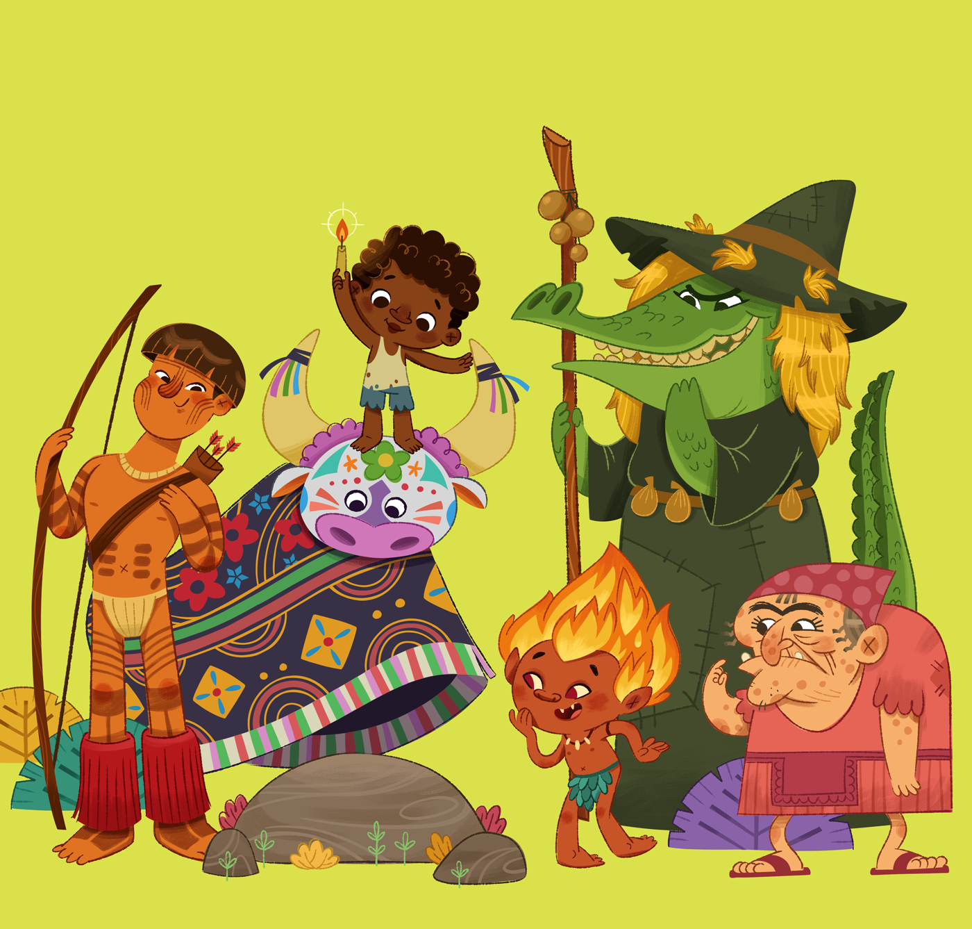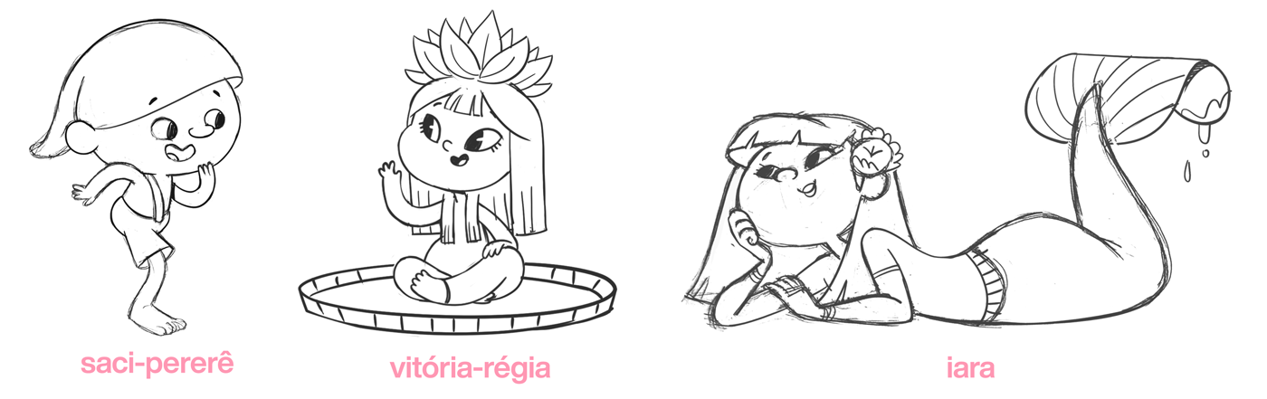 Estes foram alguns personagens que fiz para serem usados na divulgação da Coleção Folclore para Crianças da Folha de São Paulo.