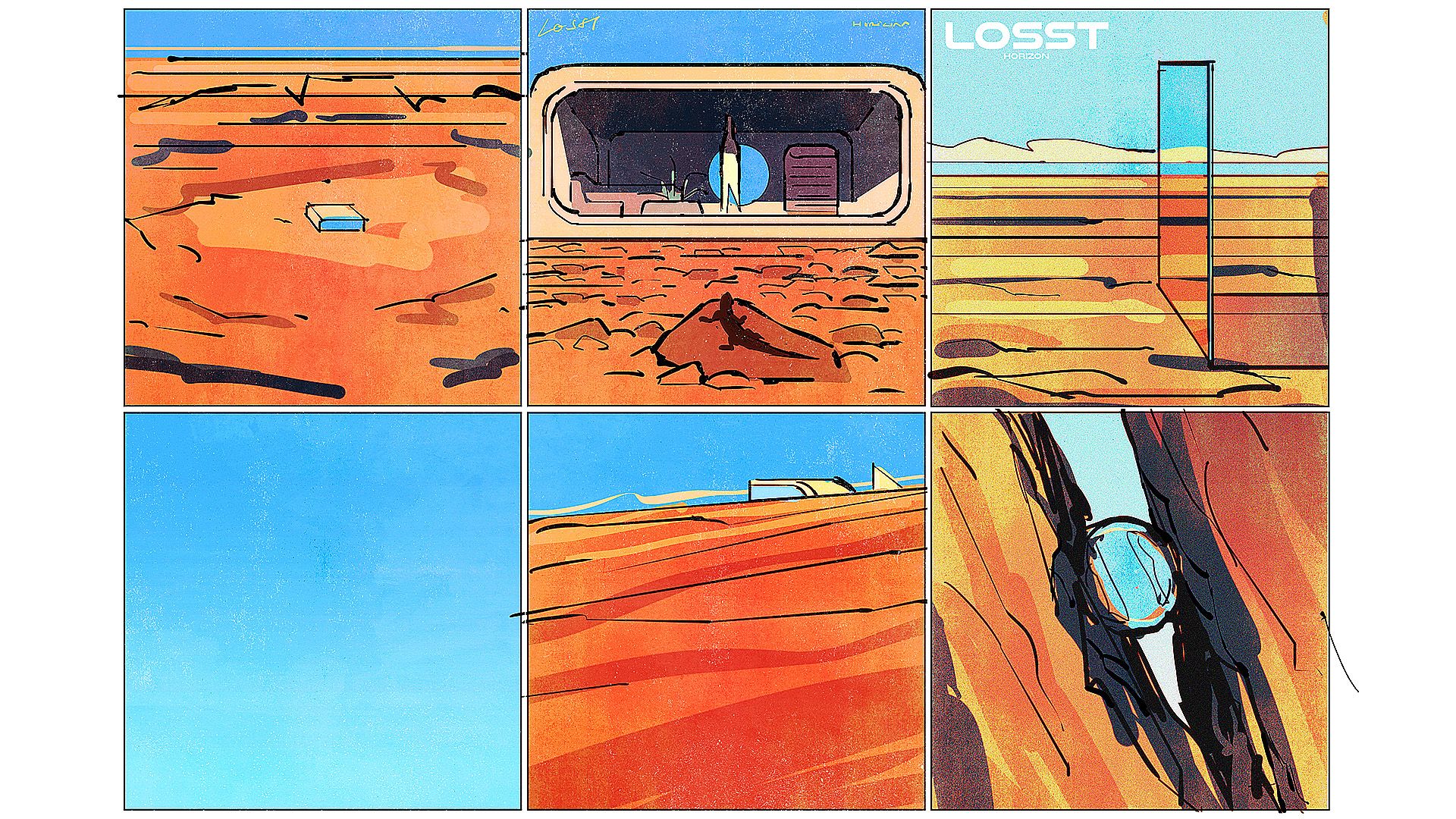 Concepts and vinyl cover for Losst, the musical project of Basile Buisson, 2020.