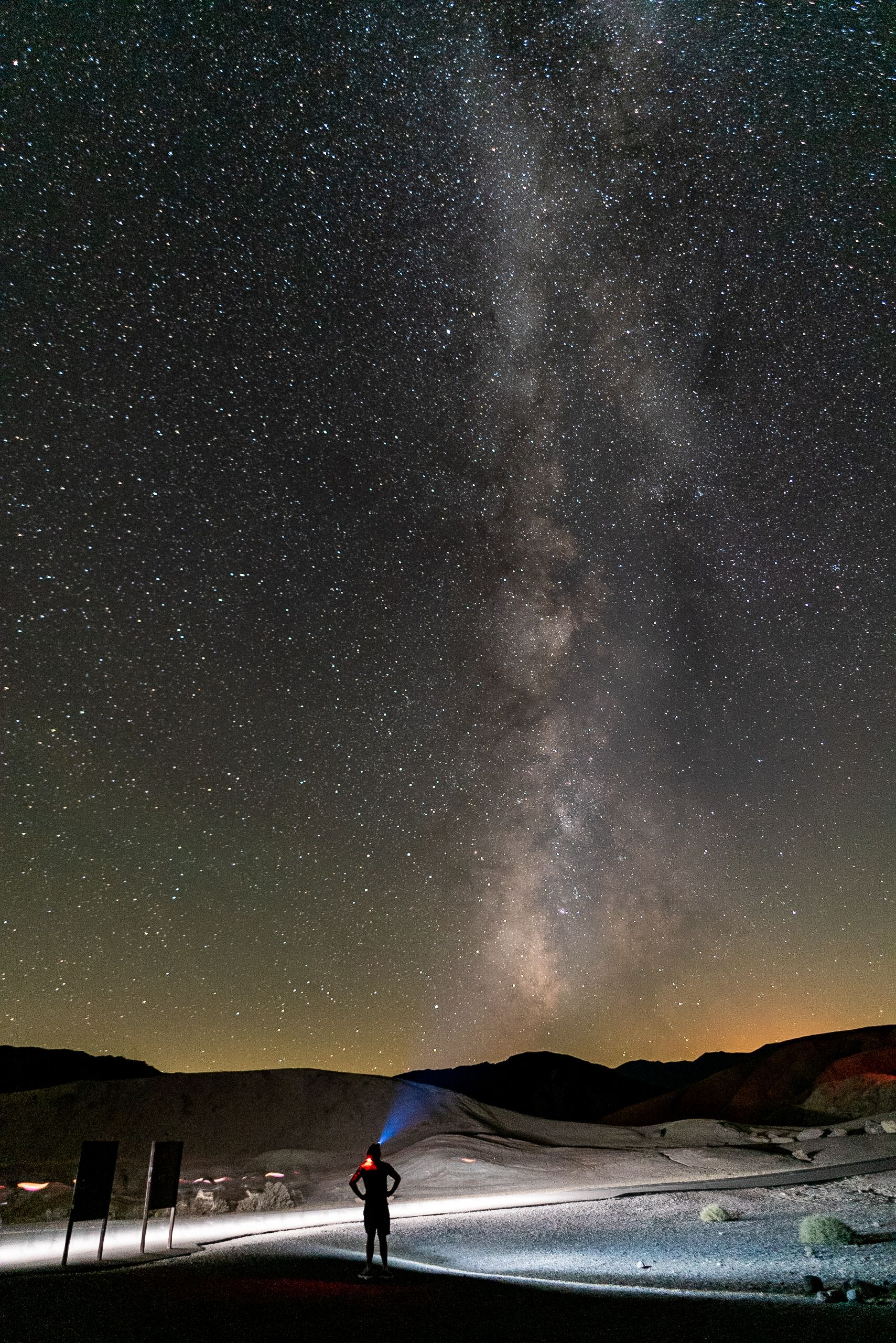 Depois de quase dois anos após concluir o curso finalmente consegui obter minha primeira imagem de astrofotografia, pois até então não tinha conseguido nas redondezas da minha cidade, seja pela questão do céu poluído pelas luzes da cidade ou por nuvens, seja pela questão da segurança. A aplicação da teoria aprendida no curso foi obtida através de uma viagem de turismo pós pandemia para os Estados Unidos, em nada menos que o Death Valley. Fiquei impressionado e deslumbrado com a escuridão do céu e a beleza das incontáveis estrelas iluminando aquela negritude, a qual possibilitou a captura das imagens que seguem anexo.