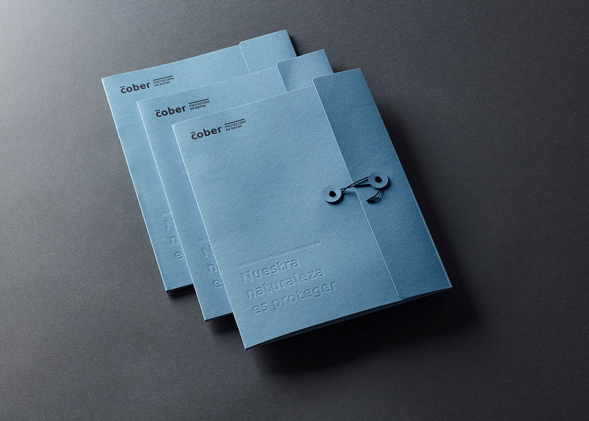 Para Cober, su naturaleza es proteger. Las formas sencillas, los acabados y papeles naturales y la ilustración corporativa cercana, son los elementos sobre los que se construye la imagen de esta asesoría especializada en la protección de datos.
