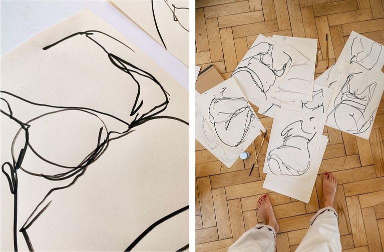 I had a chance to arrange a drawing session with a beautiful female model. I used vintage paper and Indian ink for it. We like the results so much! I filmed the process of drawing, as always. But at the end I decided to repeat one piece for my Reels video.