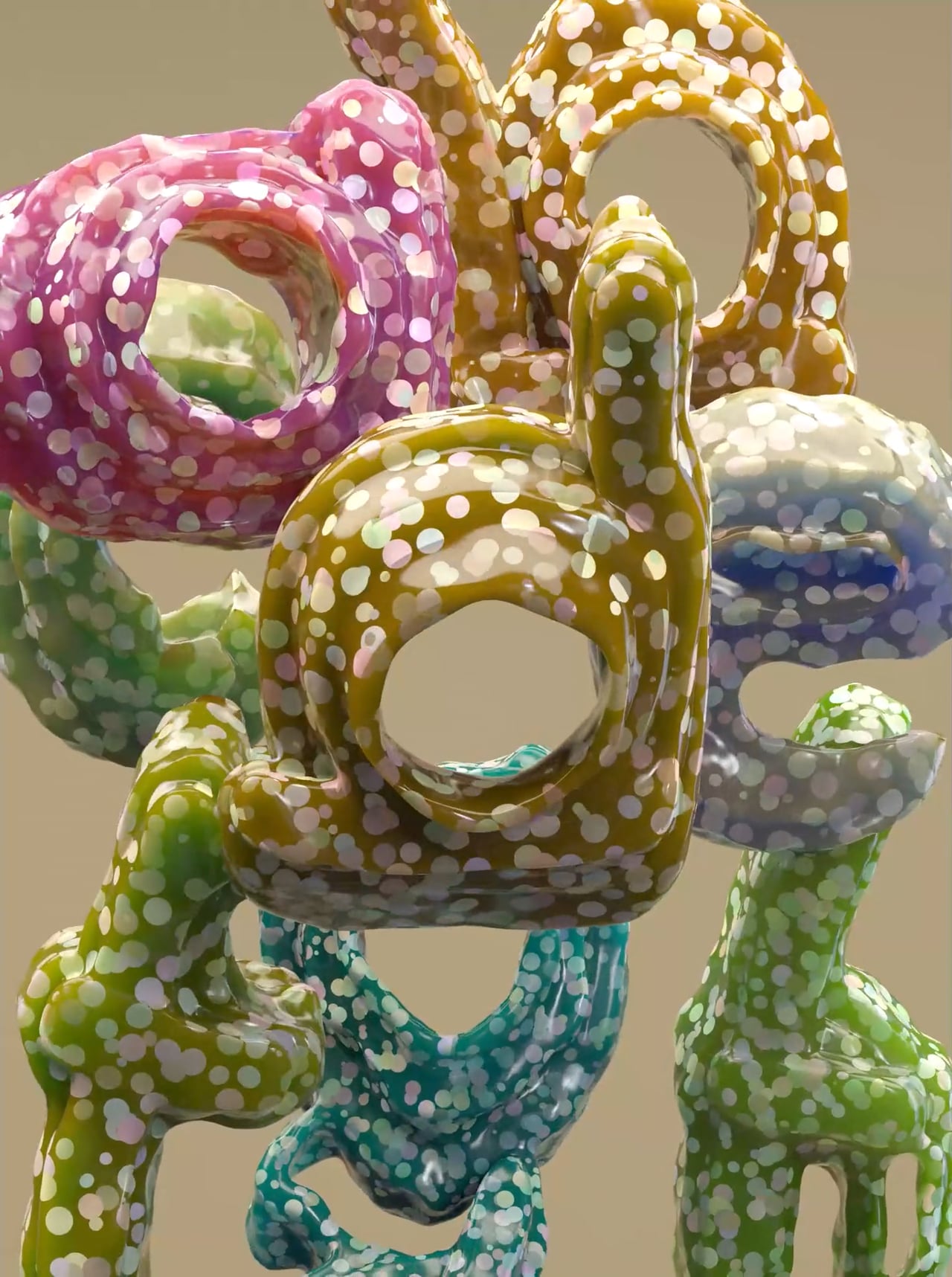 This is an animated collection of 3D lettering inspired by the Diverse 3D Type philosophy, created to represent our humanity and illustrated with modular geometric shapes and decorated with dots of various colors representing our diversity.