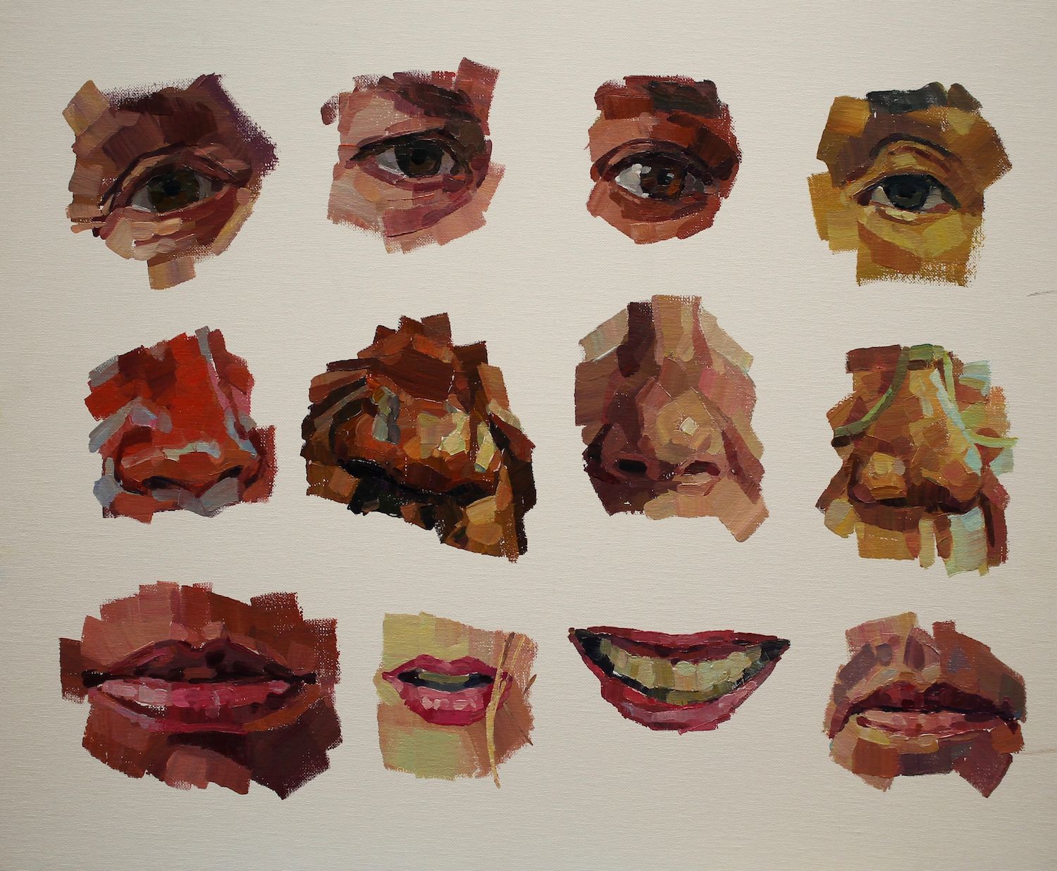 Rick, acrylic on canvasCool, acrylic on canvasRed and Green, acrylic on canvasGolden, acrylic on canvasFace Parts, acrylic on paperOrange, acrylic on canvasMagenta, acrylic on canvasEmily, acrylic on canvasSelf Portrait, acrylic on canvasSelf Portrait with Sock, acrylic on canvas