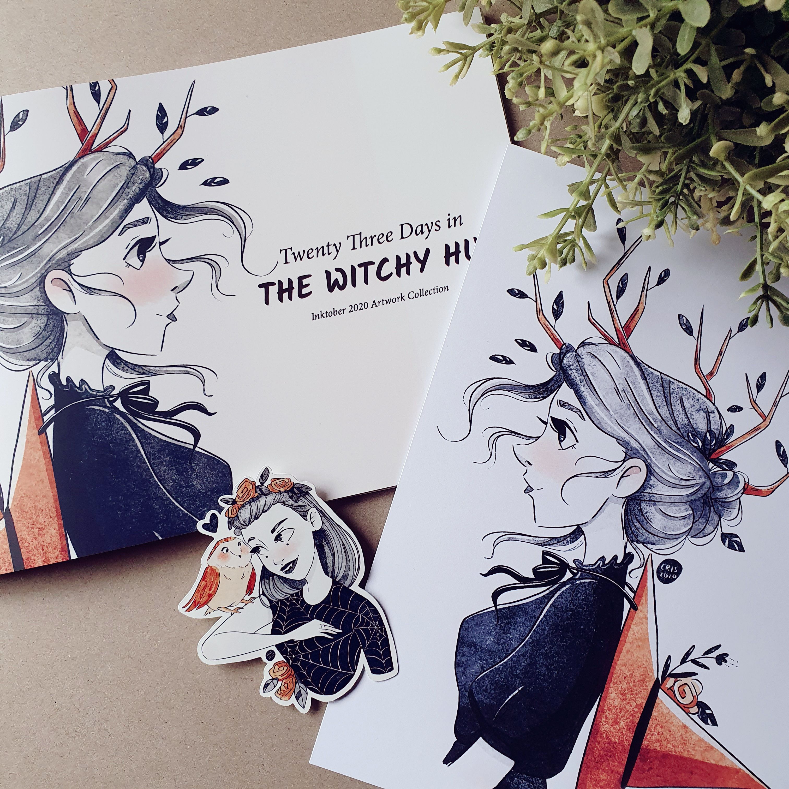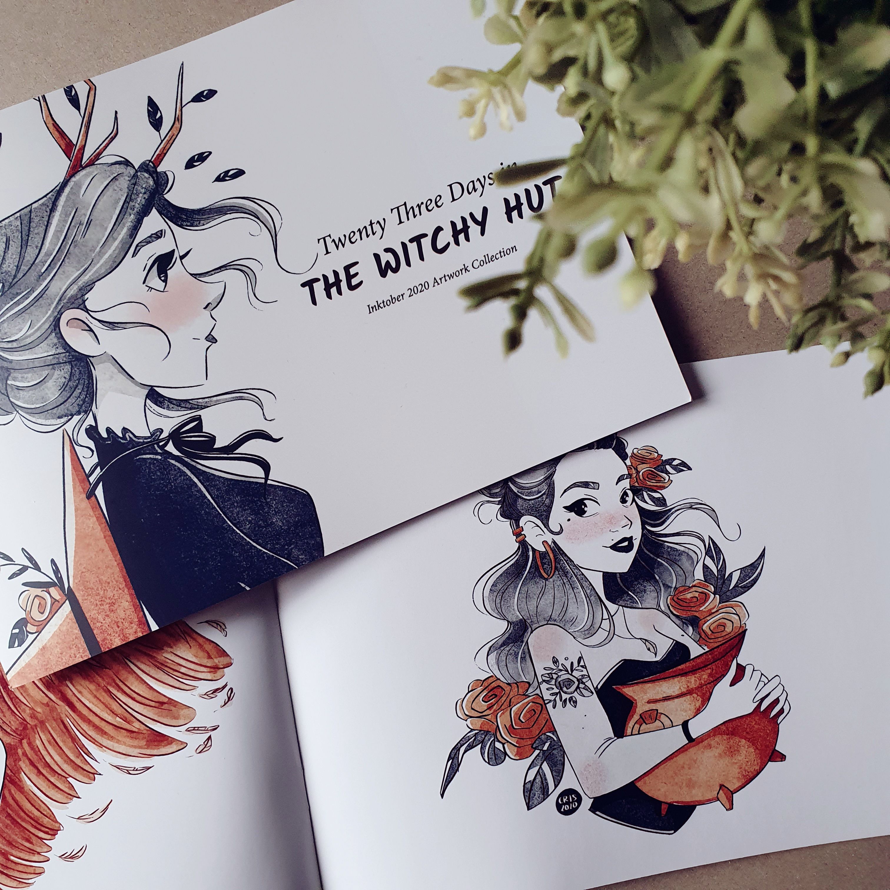 Para la ocasión creamos "The Witchy Hut" una propmpt list que abarcaba todo el mes. En mi caso conseguí realizar 21 de los 31 dibujos, que mas tarde recopilé en un pequeño Zine.