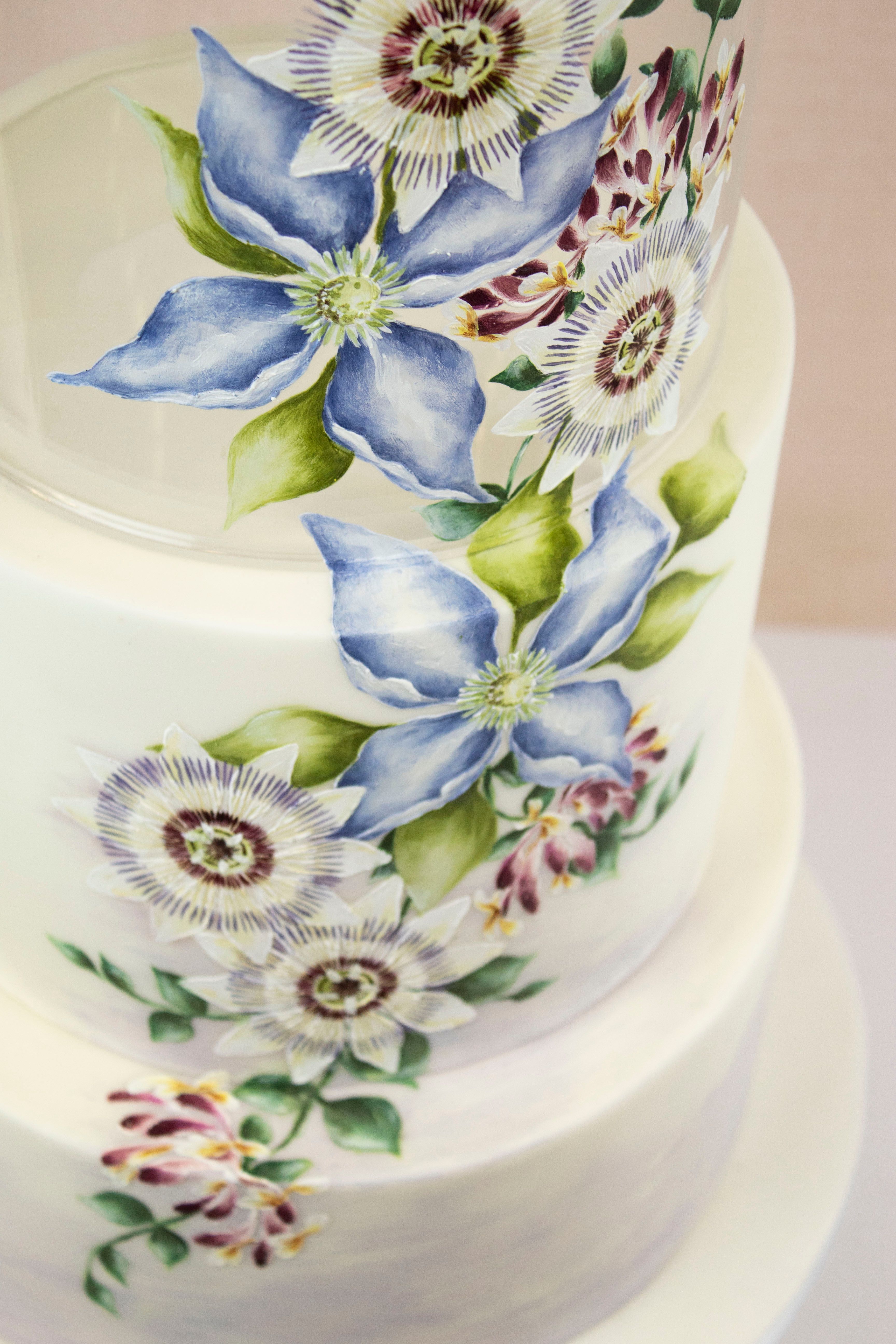 Hand painted climbing flowers on acrylic and cake tiers