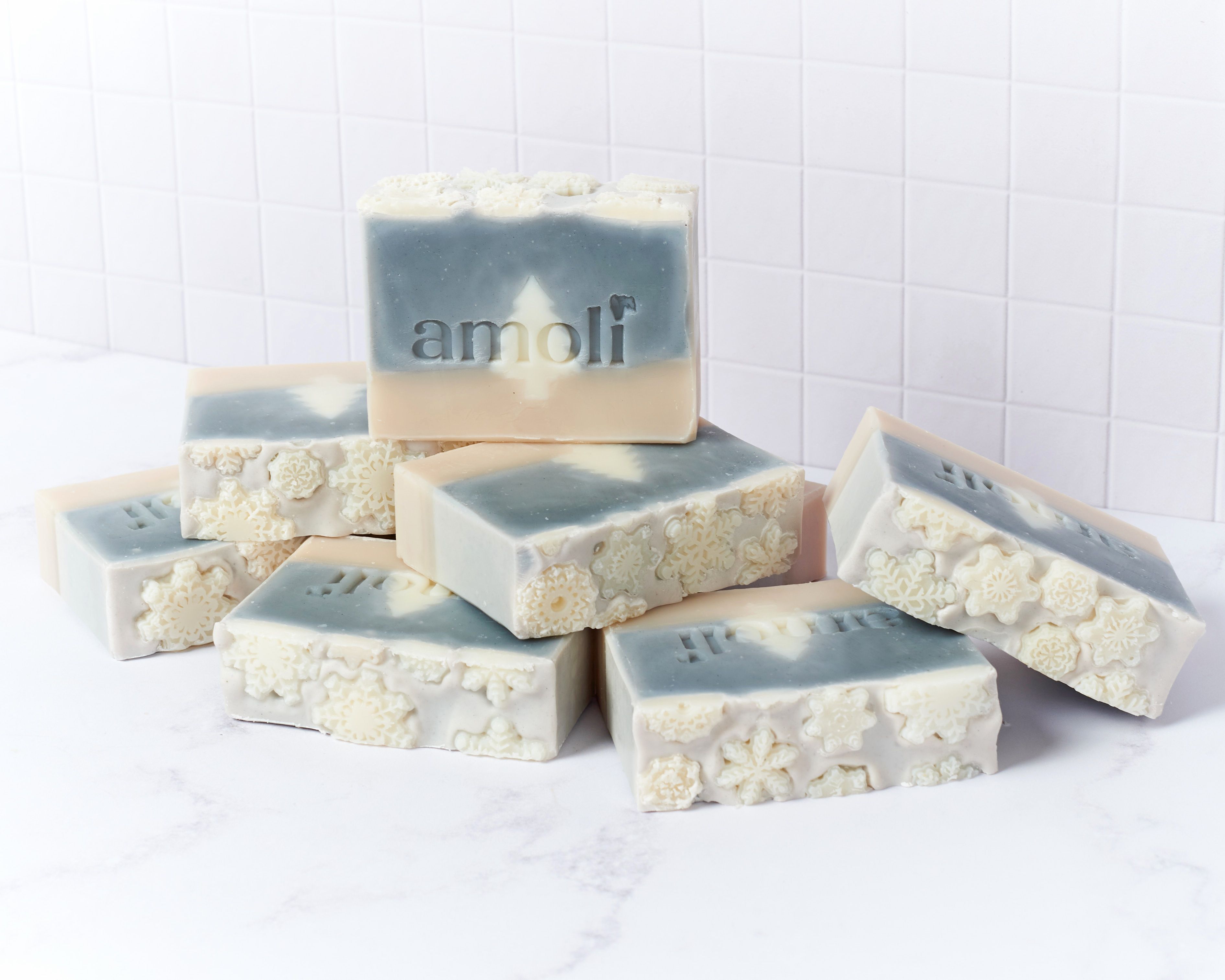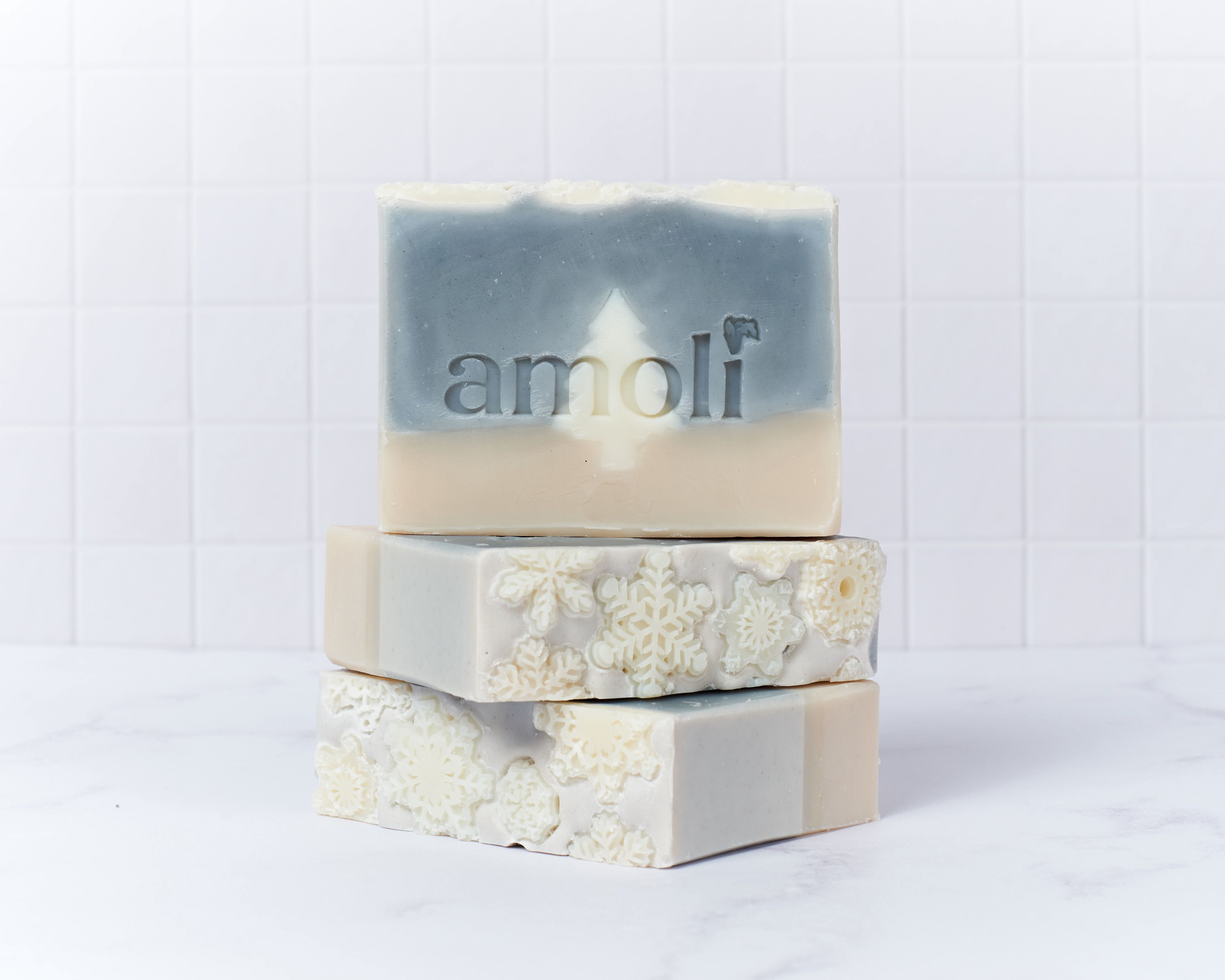 Uno de nuestros primero proyectos como marca fue crear un conjunto para Navidad. Para esto quisimos irnos por los colores de la festividad y los olores que la caracterizan. Usamos los colores cafés, amarillo, azul, blanco, rojo y verde para nuestros jabones, ya que para nosotros esta es la paleta de colores de las fiestas decembrinas. En cuanto a los olores, usamos aromas frescos como la hierbabuena, la menta piperita y pinos para un jabón, para otro hicimos una mezcla con olor a pastel navideño de canela y a otro le pusimos diferentes árboles, incienso y un toque de anís. Estos son los productos resultantes de nuestra campaña navideña.