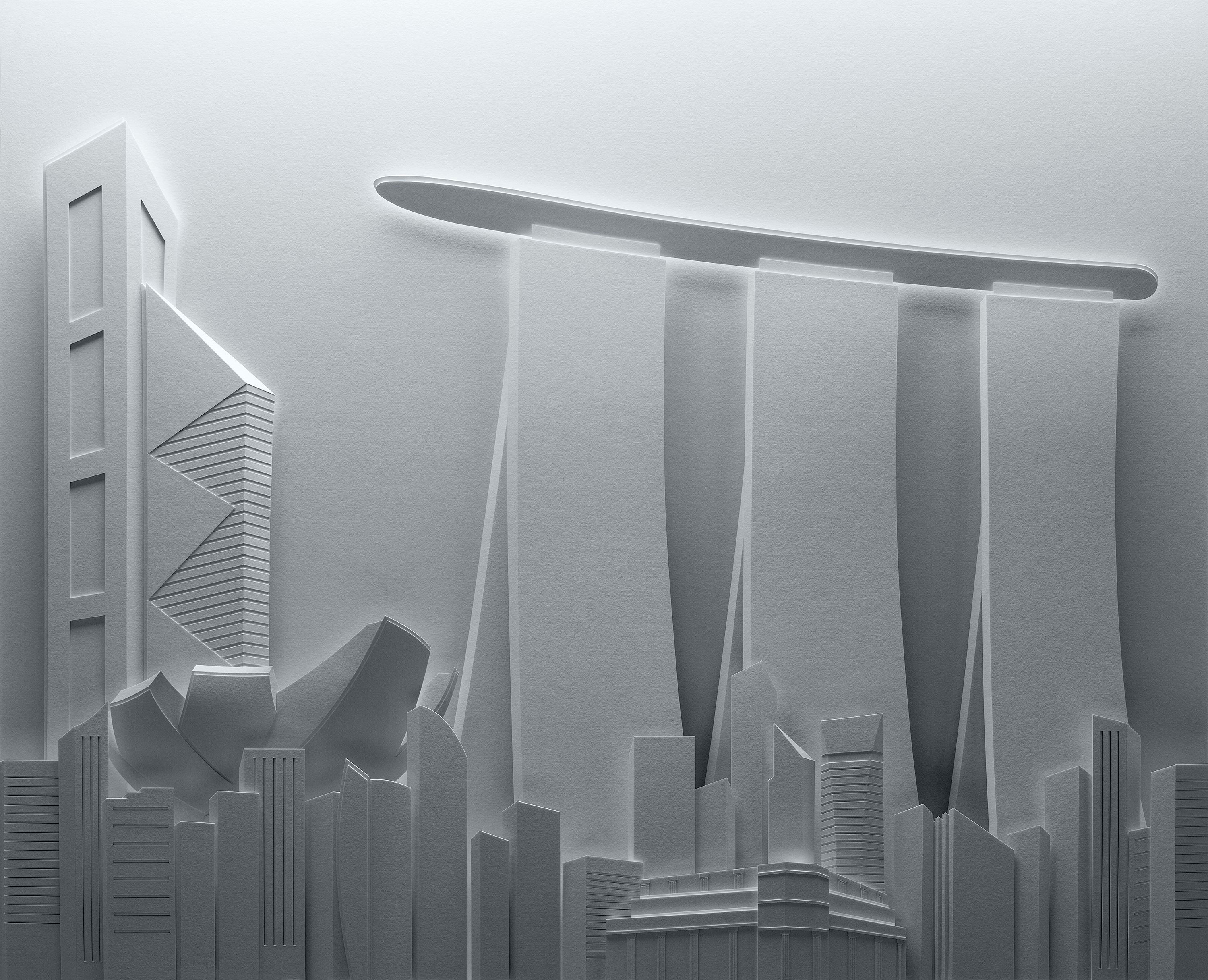 A collaboration with Johnnie Walker Blue Label to create a series of paper sculpture cities from around the world. A graphic depiction of the paper sculptures and the artist's signature were printed on the bottles and packaging to sell as a limited edition collectable.