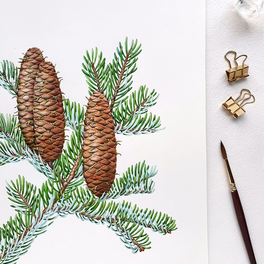 Two tastes were chosen: walnut and silver fir. Both plants had to be exactly as they grow in this region. Silver fir was quite interesting, as it's needles are light blue colour, almost white on one side and green on another.