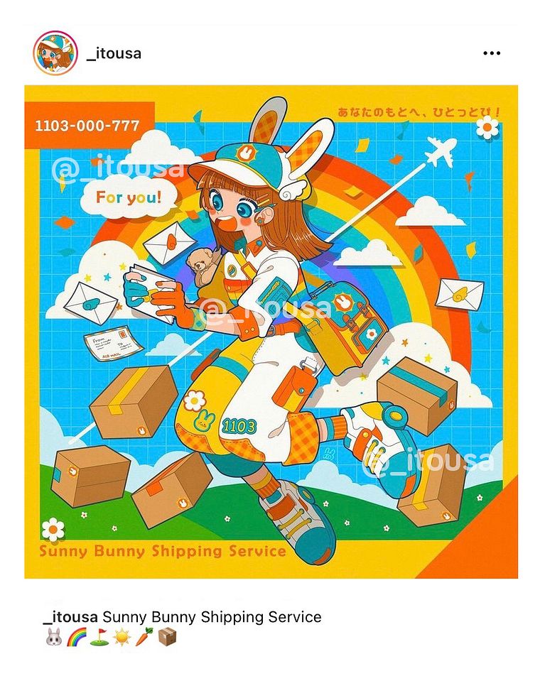 En 2020 tuve el placer de toparme con el arte de itousa y desde entonces hemos mantenido una bonita amistad online. Su arte colorido, divertido y lleno de imaginación infantil me inspira y llena de felicidad y nostalgia.