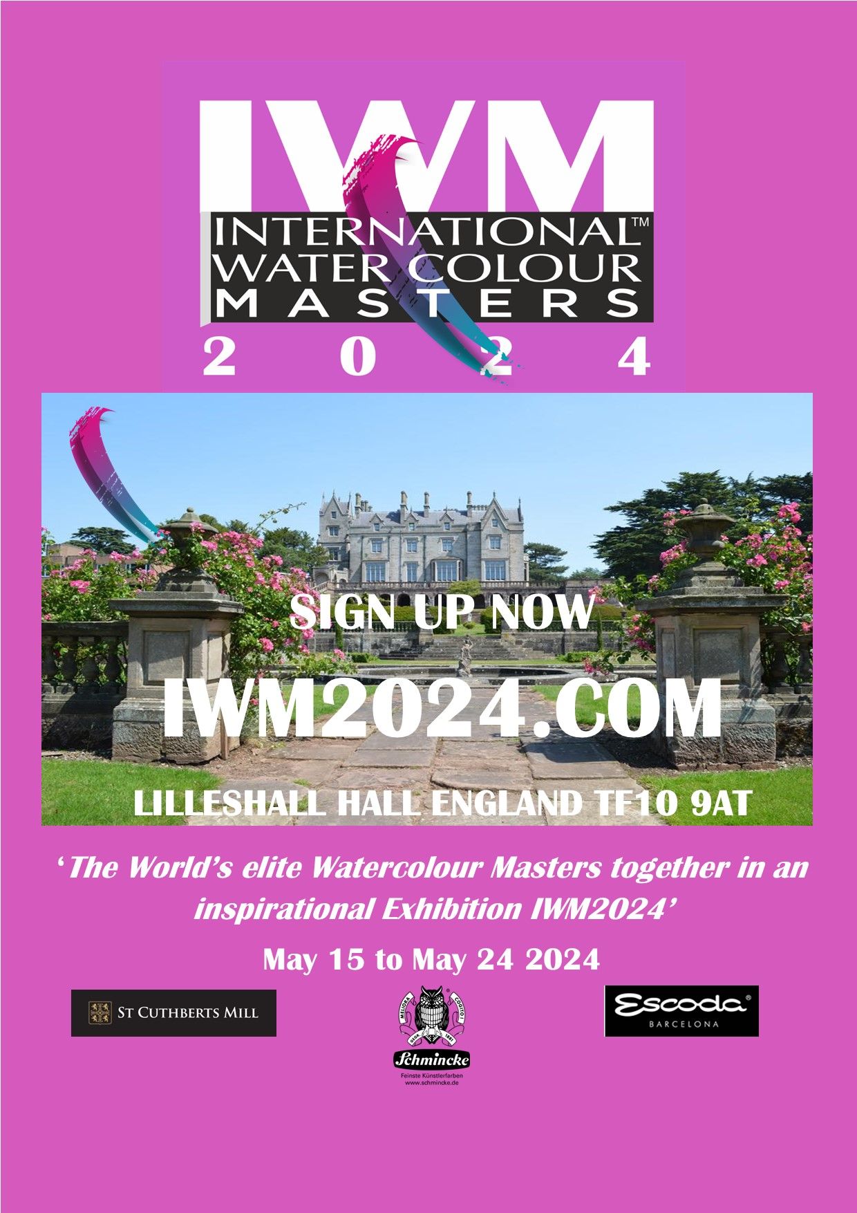 The worlds elite watercolour Masters all together in one fantastic exhibition. Daily demonstrations from the Masters, workshops, lectures, fabulous historic house and gardens set in beautiful English countryside. Lilleshall Hall TF10 9AT Shropshire UK. Admission by advanced ticket. A great day out ! Sign up now for all IWM2024 offers at www.IWM2024.COM
