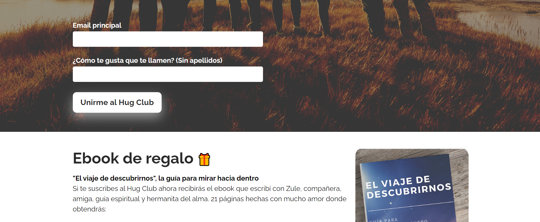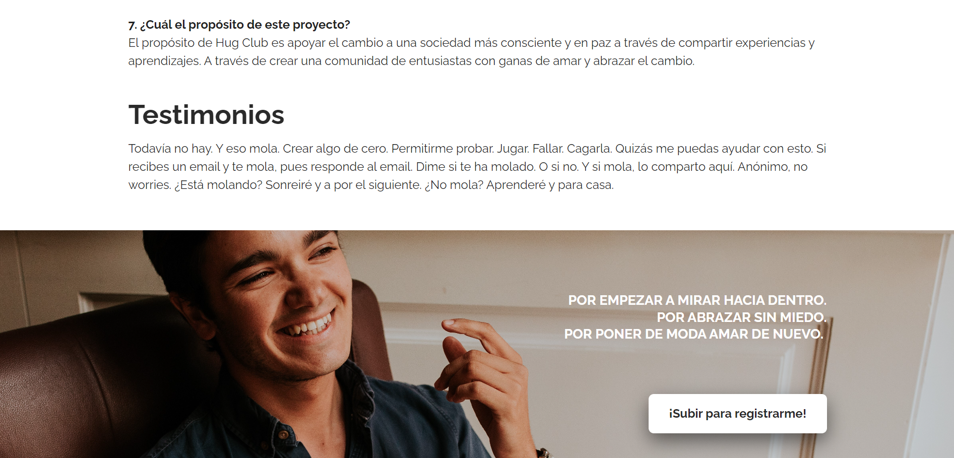 Mi proyecto del curso: Hug Club - La newsletter para aprender a vivir en paz (Landing Page)