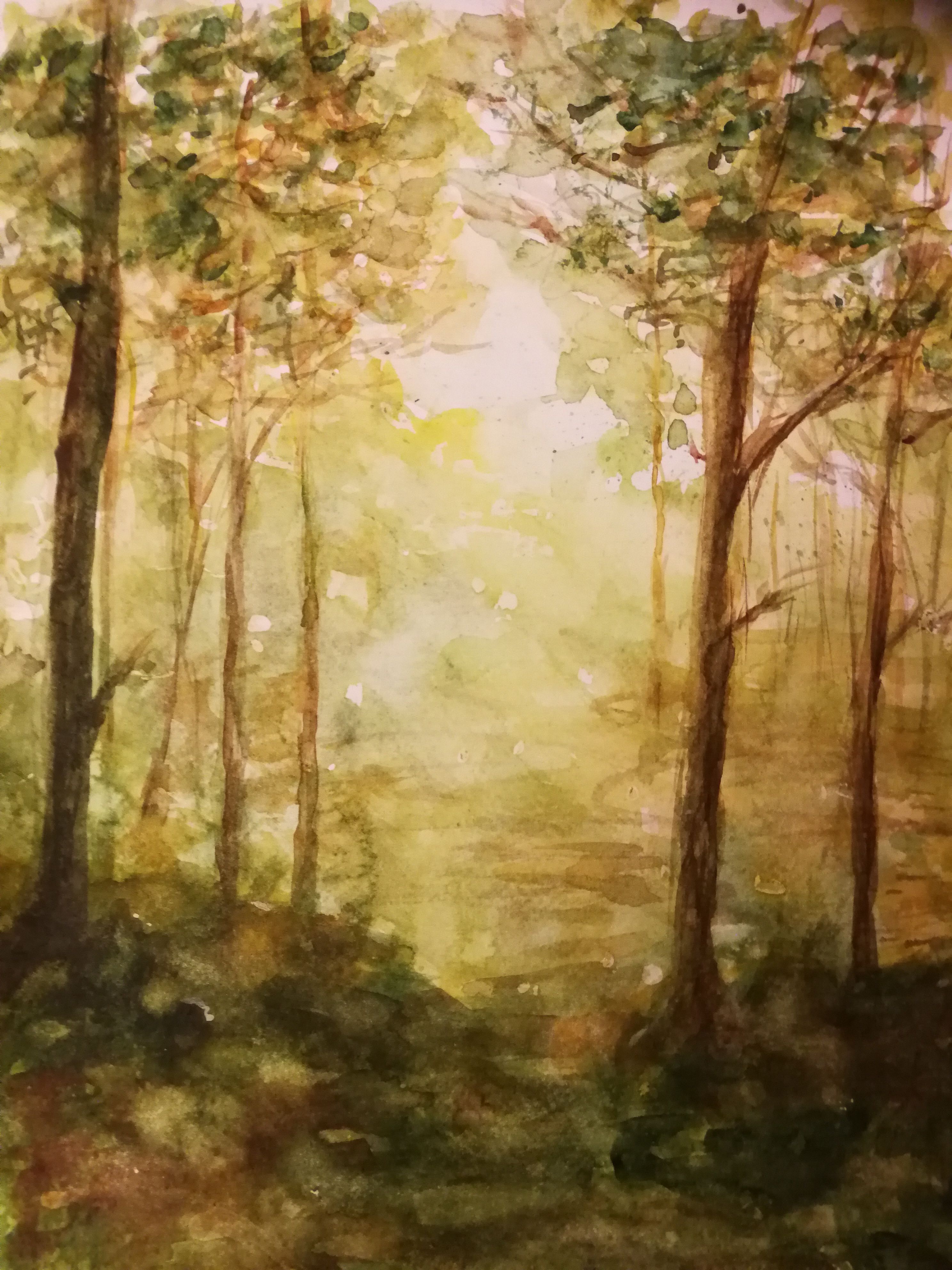 I am delighted that you enjoyed my course, and I really like what you achieved in this painting. The style is so cool! It doesn't look like you were just starting to paint in watercolor, but as if the misty effect was intended.