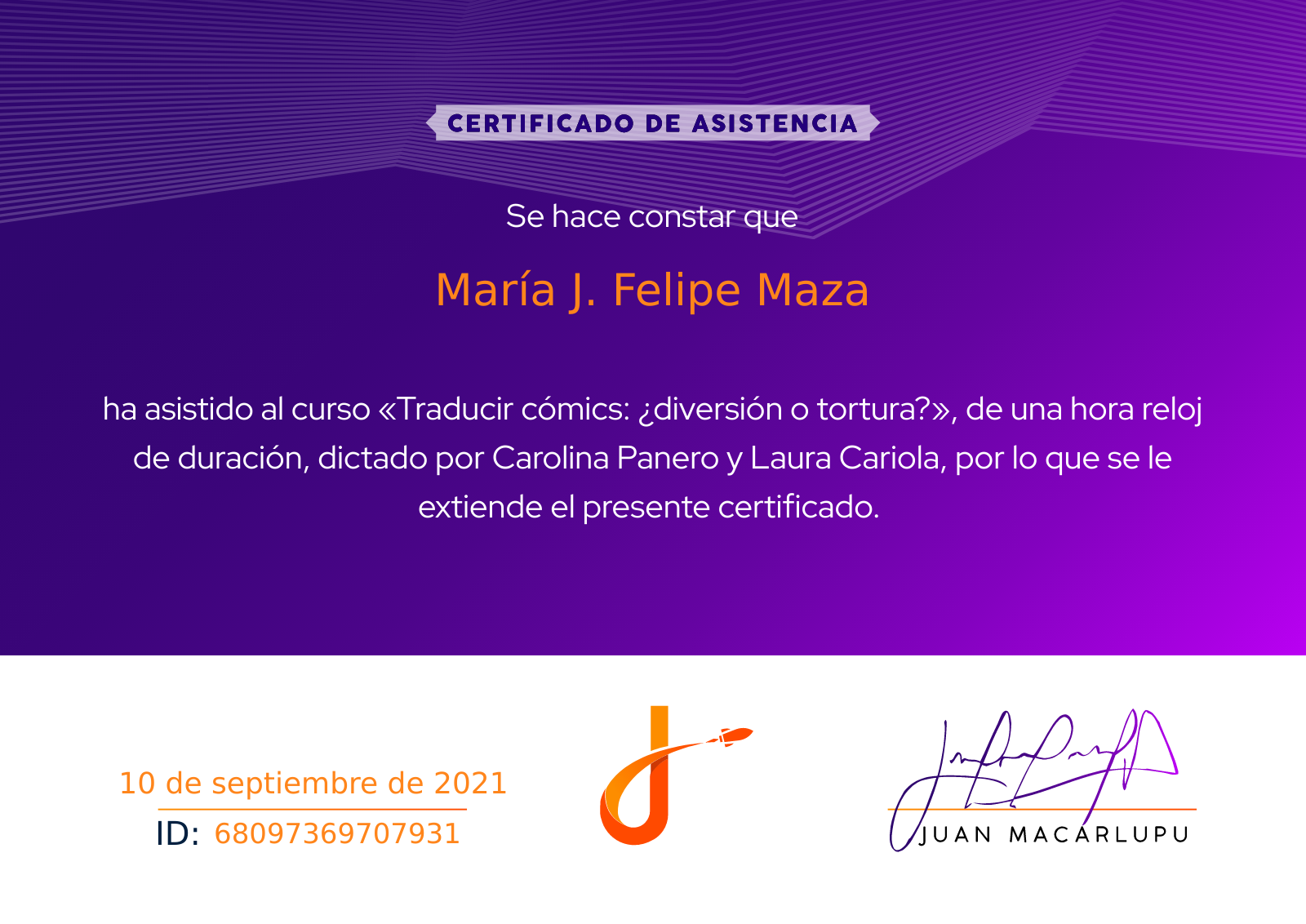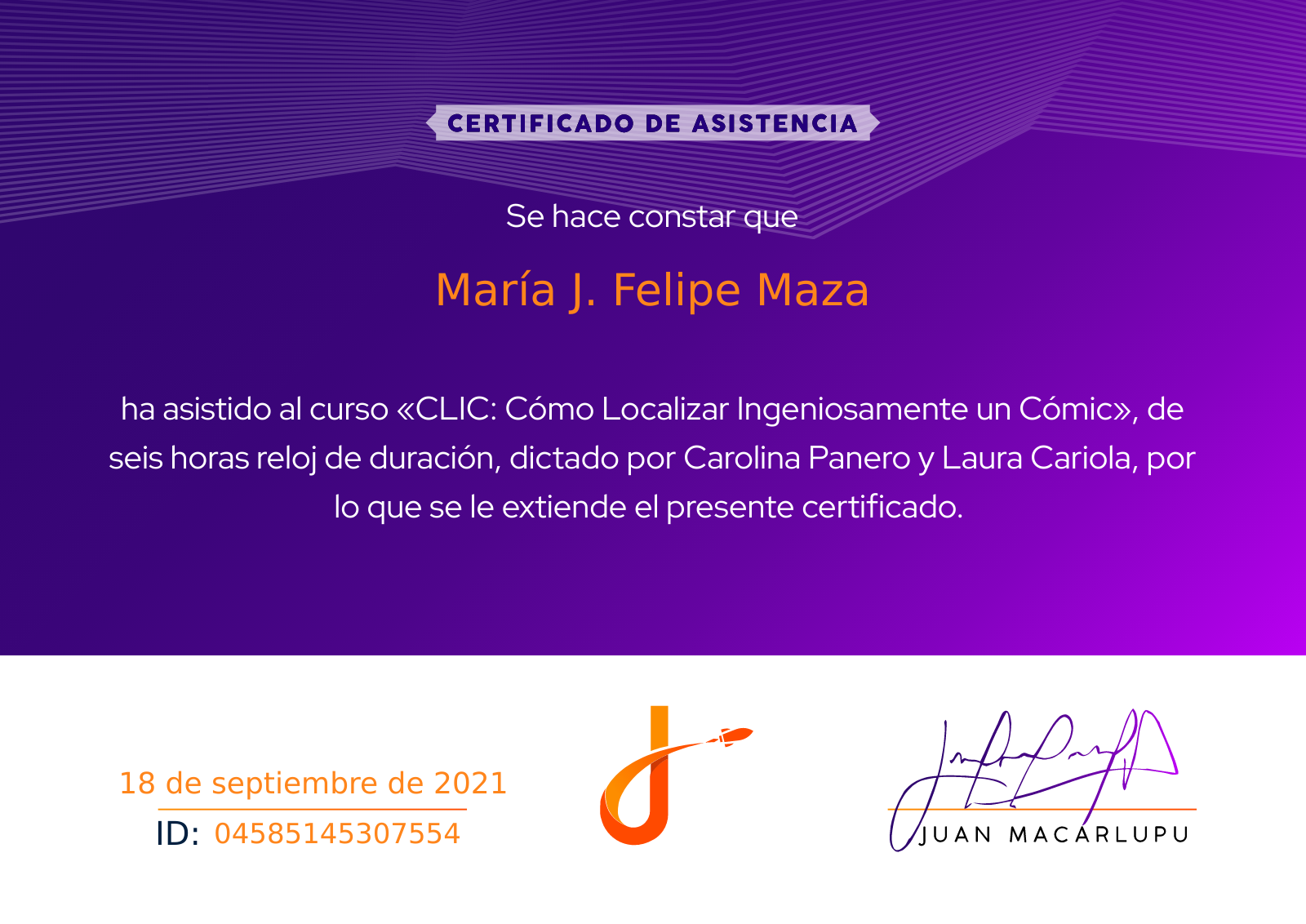 Realicé cursos sobre traducción y localización de cómics, dictados por traductoras profesionales en el tema.