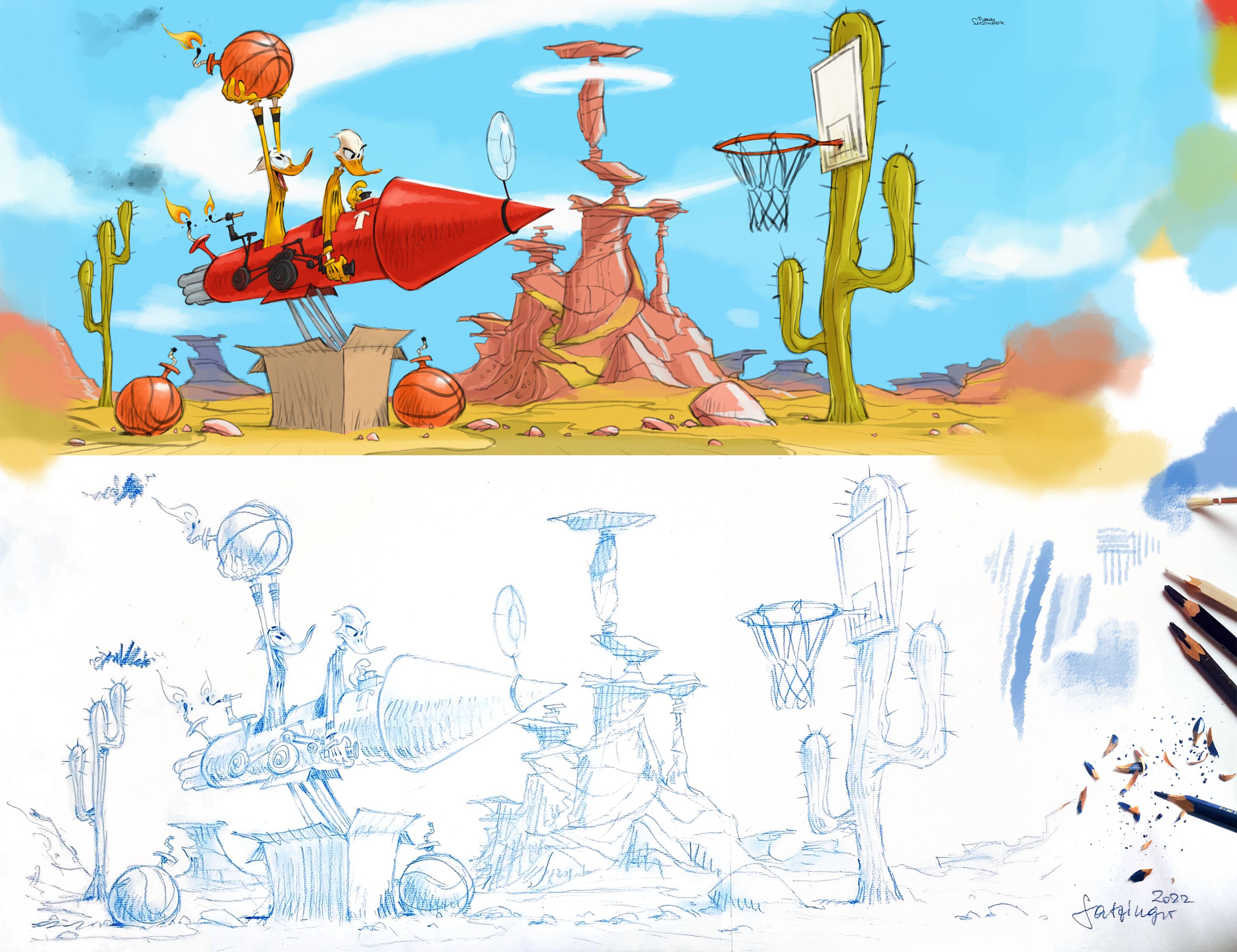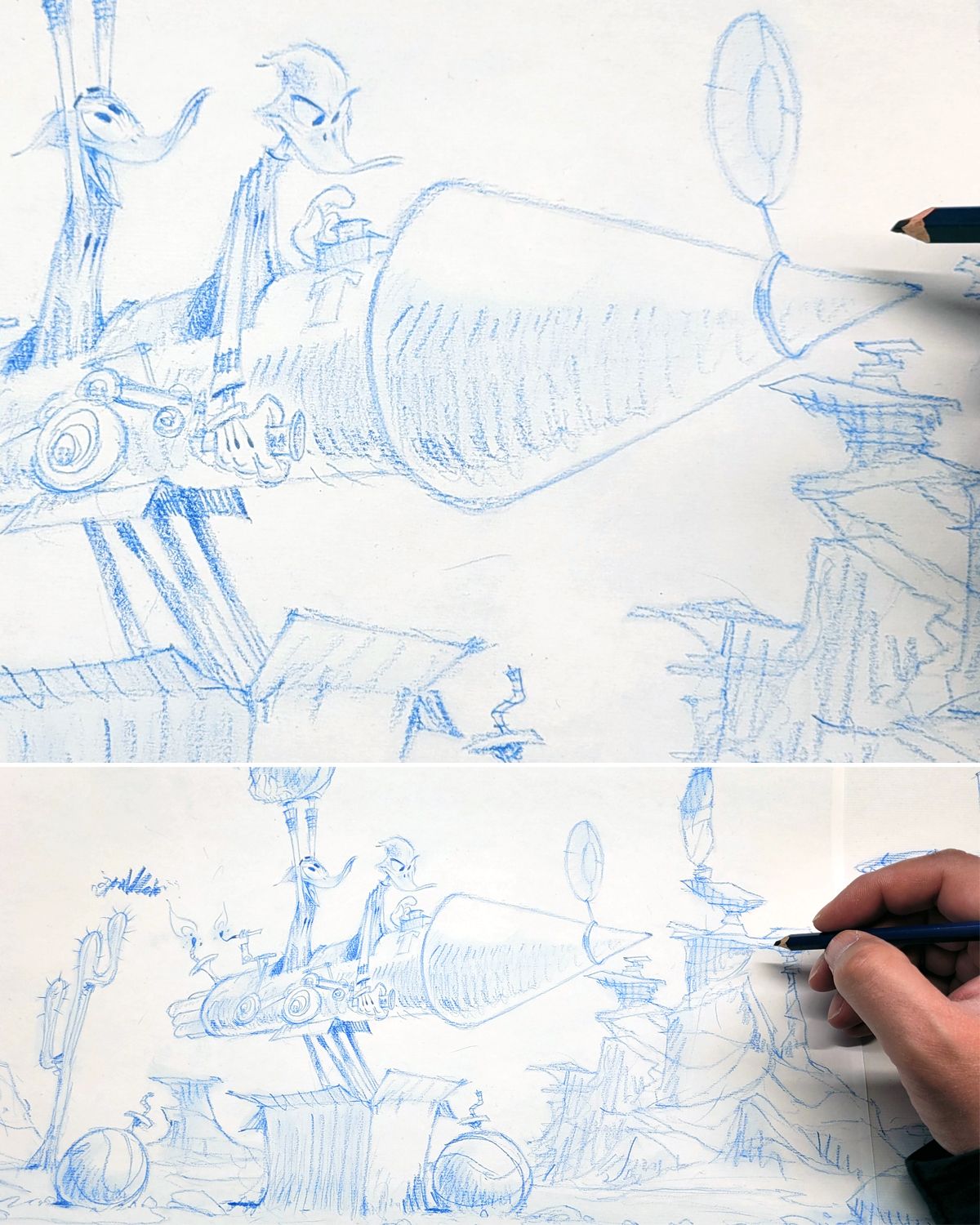 The Ducks From A.C.M.E. is a parodic take on Chuck Jones' and Maurice Noble's 'Wile E. Coyote and the Road Runner' world, and a little bit on 'The Men from U.N.C.L.E.', because of the title and the gadgets.