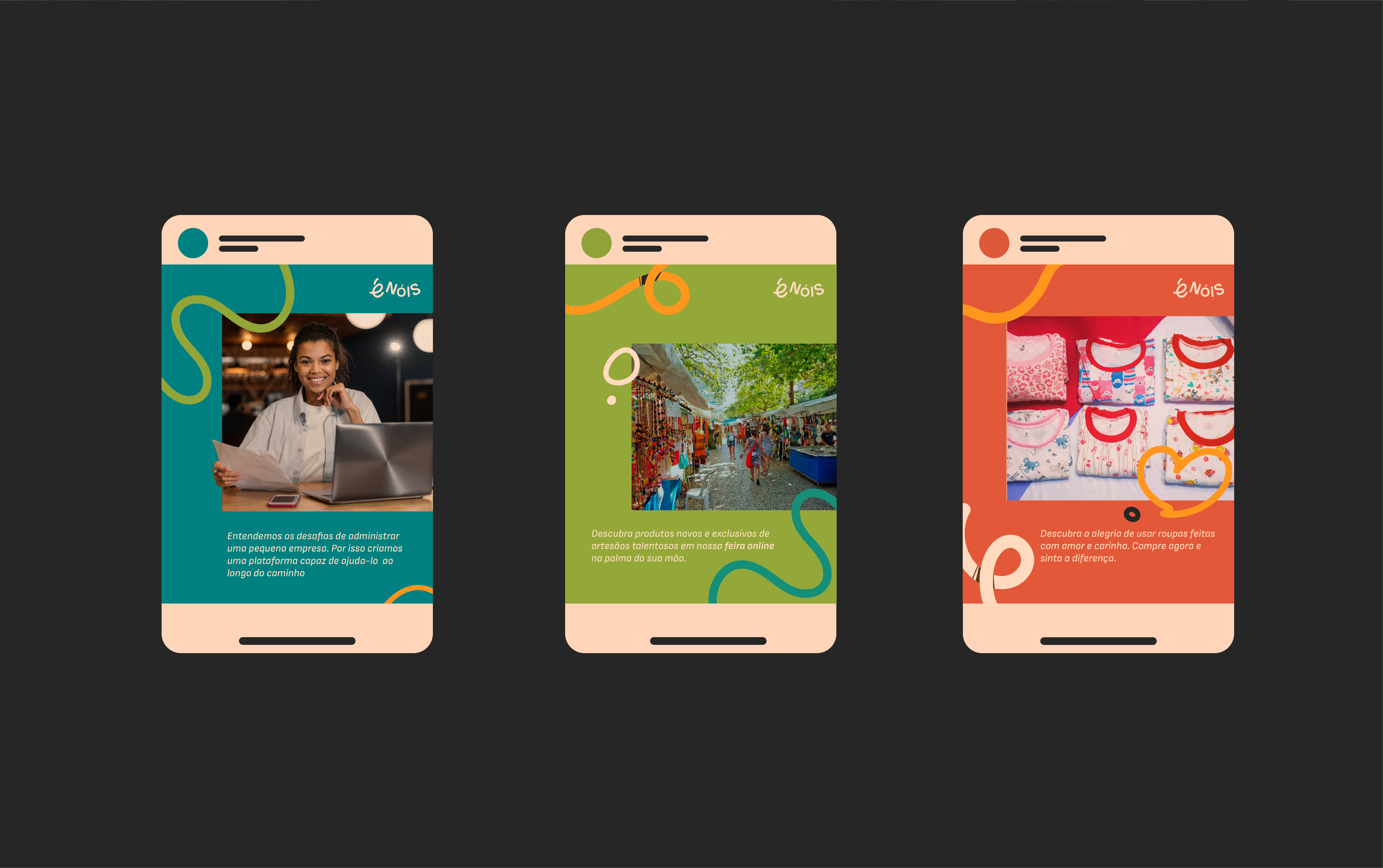 A É nóis é uma empresa de marketplace voltada para os pequenos empreendedores de vestuários e artesanato, que tem como objetivo conectar os pequenos produtores aos clientes, além de incentivar uma união entre os pequenos empreendedores, tudo isso através da plataforma digital, redes sociais e projetos externos da marca. Busca passar uma imagem séria e comprometida com os produtores e clientes da plataforma, além de ser uma alternativa inovadora que trás para o mercado, já saturado pelos grandes negócios, a diversidade e criatividade que os pequenos têm a oferecer.