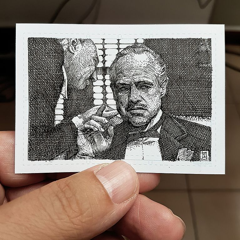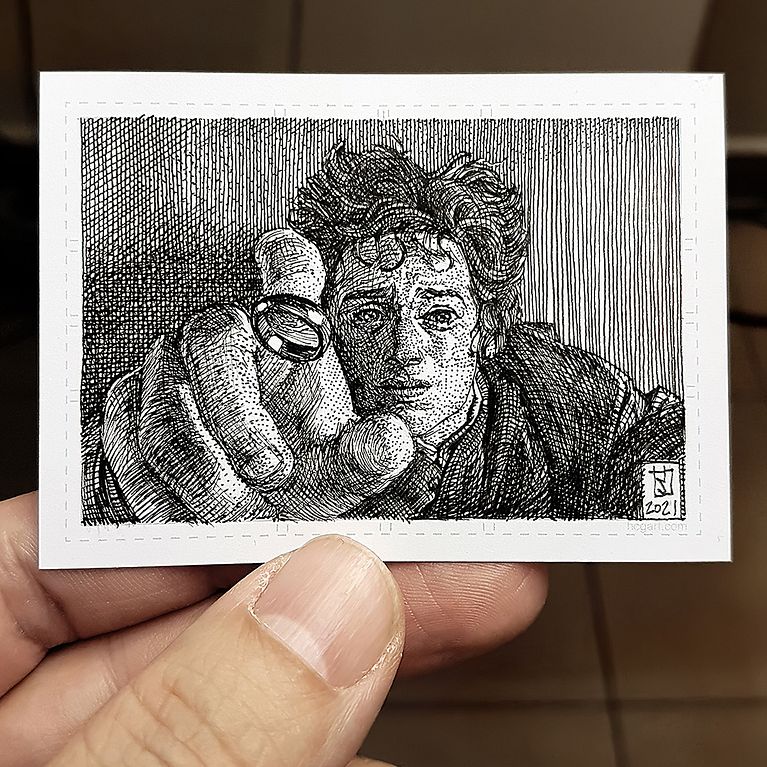 Movies pen and ink illustrations on sketchcards for Hero Complex Gallery in Los Angeles