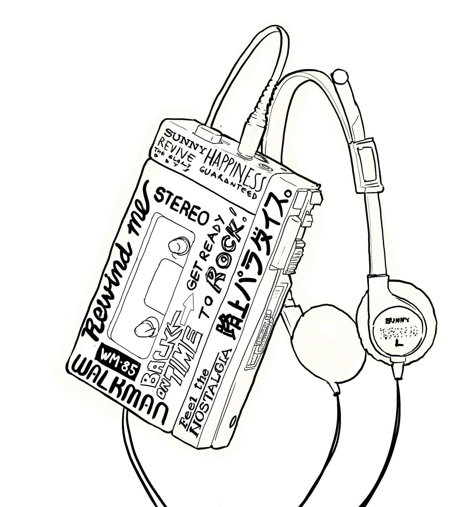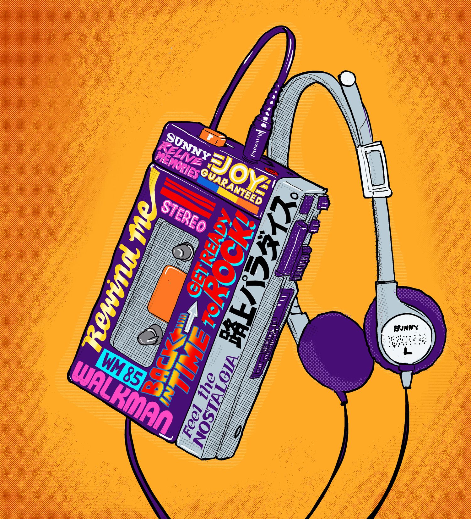 This came out great! I love that you mixed in some Japanese character, too. That Walkman is so iconic. Nice work - love this!