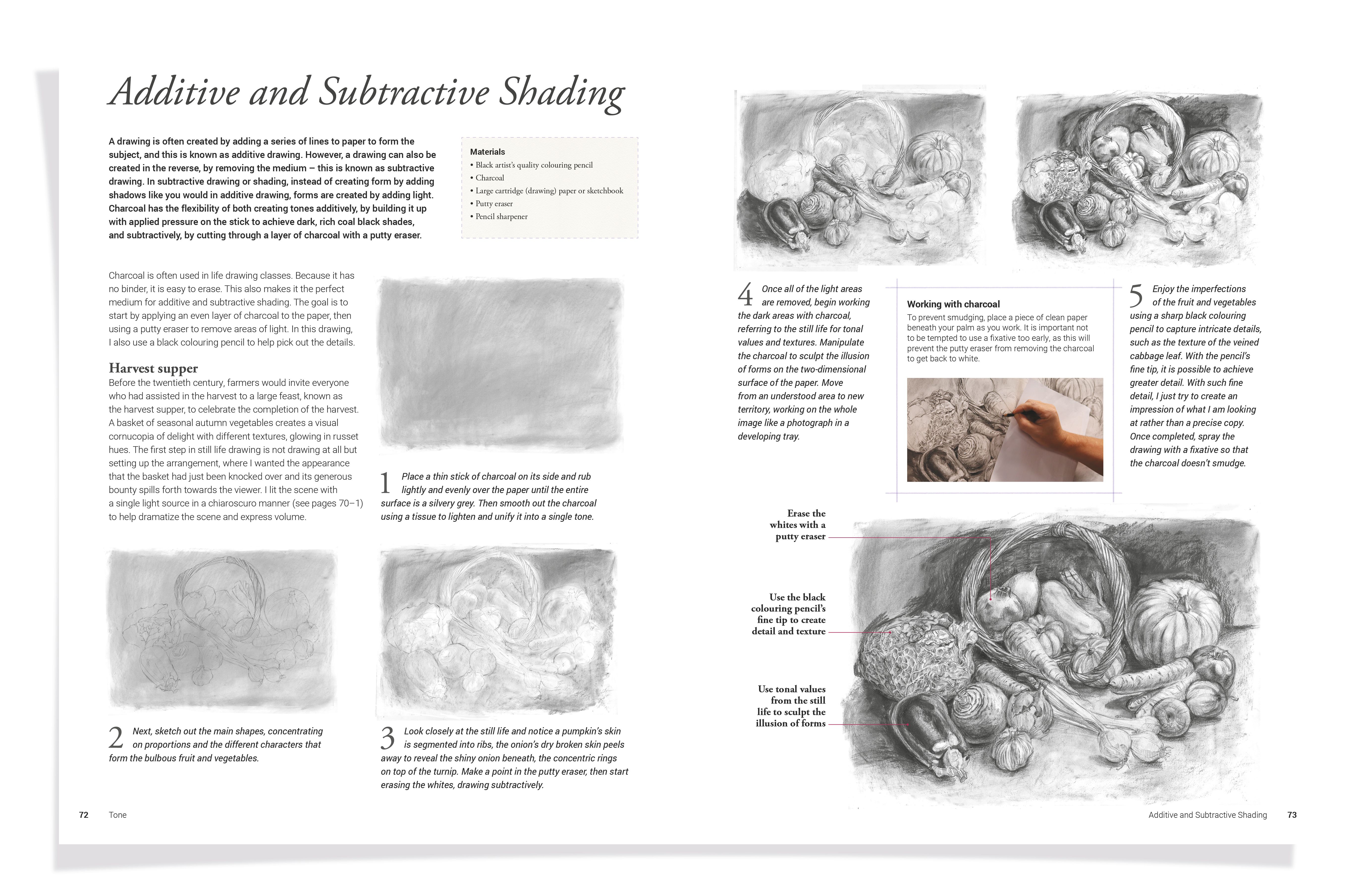Drawing the Natural World is a practical and comprehensive guide for artists of all abilities to celebrate through art the beauty of the flora and fauna that make up our planet. The book is divided into the fundamental concepts of art – colour and tone, pattern, texture, line, shape, form and space – to introduce the essential techniques and demonstrate how they can be used in drawing the natural world through practical projects. Further chapters cover the anatomy of animals to ensure posture and gait can be accurately captured, and the fundamentals of composition. There is also introduction to the different materials and equipment that can be used, and a guide to basics of drawing. Each of the projects in the book includes a fully illustrated step-by-step sequence to follow, plus helpful tips and advice. There’s also background information about the featured animals and plants to broaden the reader’s awareness of and connection with the natural world.
