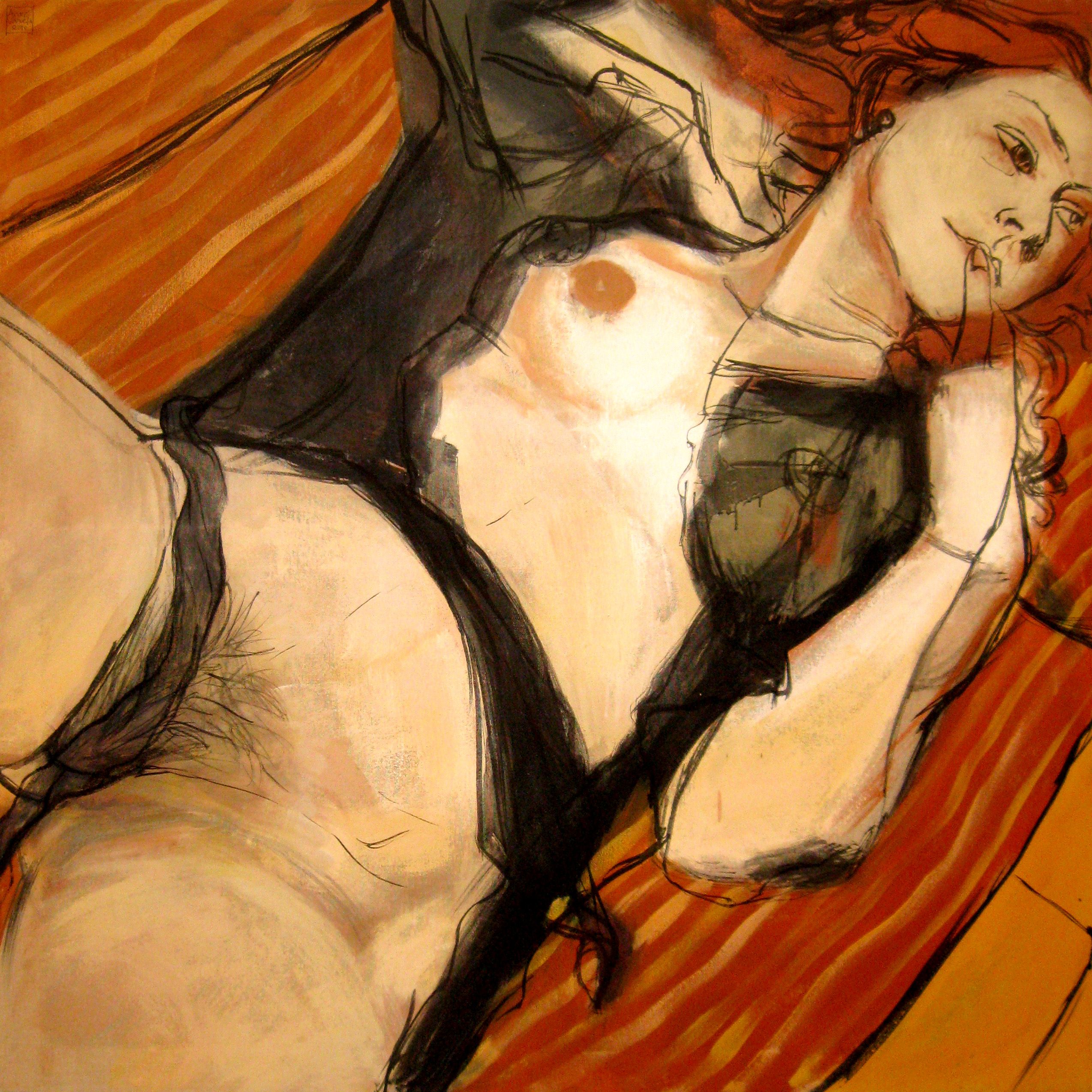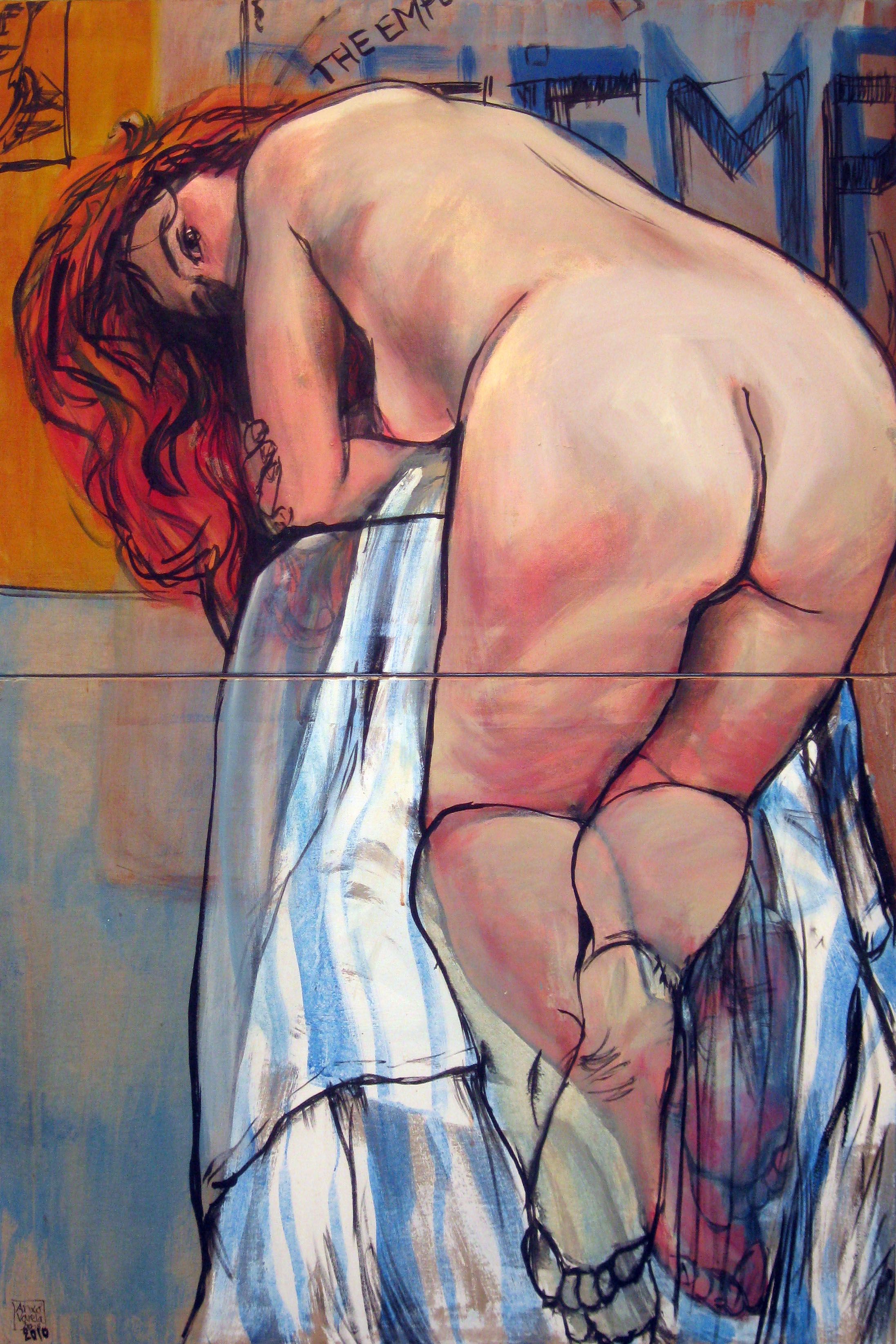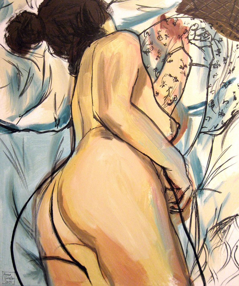 "Desajustes" fue una exposición de acrílico+tinta en Corunha en 2010. Una serie de cuadros que continúan el camino abierto por Raoul Dufy. Son cuadros en los que la mancha de color y el trazo, el dibujo del detalle no coinciden exactamente. En esta exposición experimenté varias vías: diferentes momentos, diferentes perspectivas, diferentes posturas, hasta diferentes modelos. Posteriormente he ido abundando en este camino y actualmente mi pintura utiliza con frecuencia este recurso.