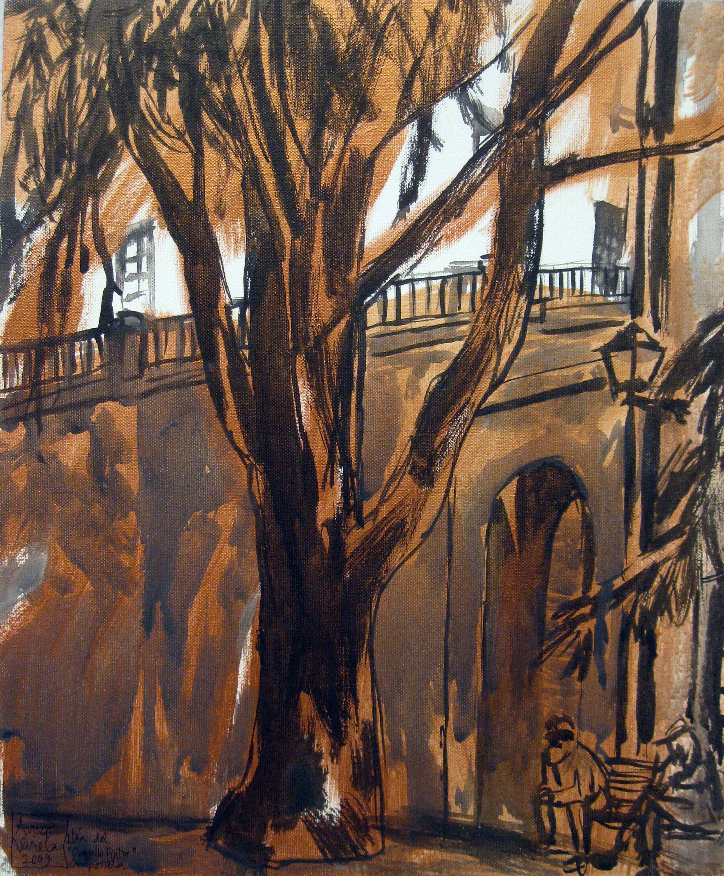 "Desencontros" foi uma exposição de acrílico+tinta na Corunha em 2010. Uma série de quadros que seguem o caminho aberto por Raoul Dufy. São quadros nos que a mancha de cor e o traço, o desenho do detalhe não coincidem exatamente. Nesta exposição, experimentei várias vias: diferentes momentos, diferentes perspetivas, diferentes posturas, até diferentes modelos. Posteriormente, tenho continuado neste caminho e atualmente a minha pintura utiliza frequentemente este recurso.