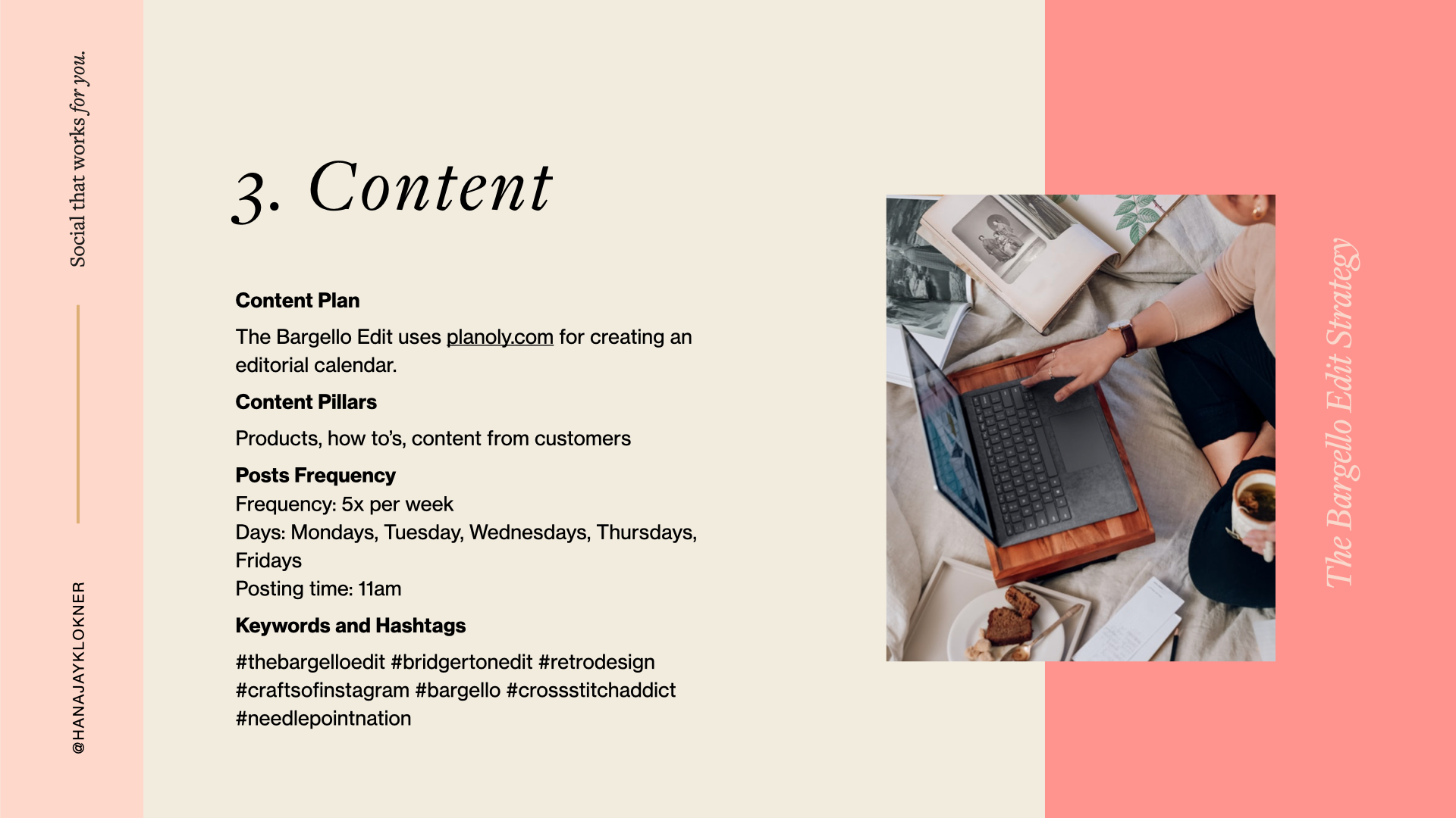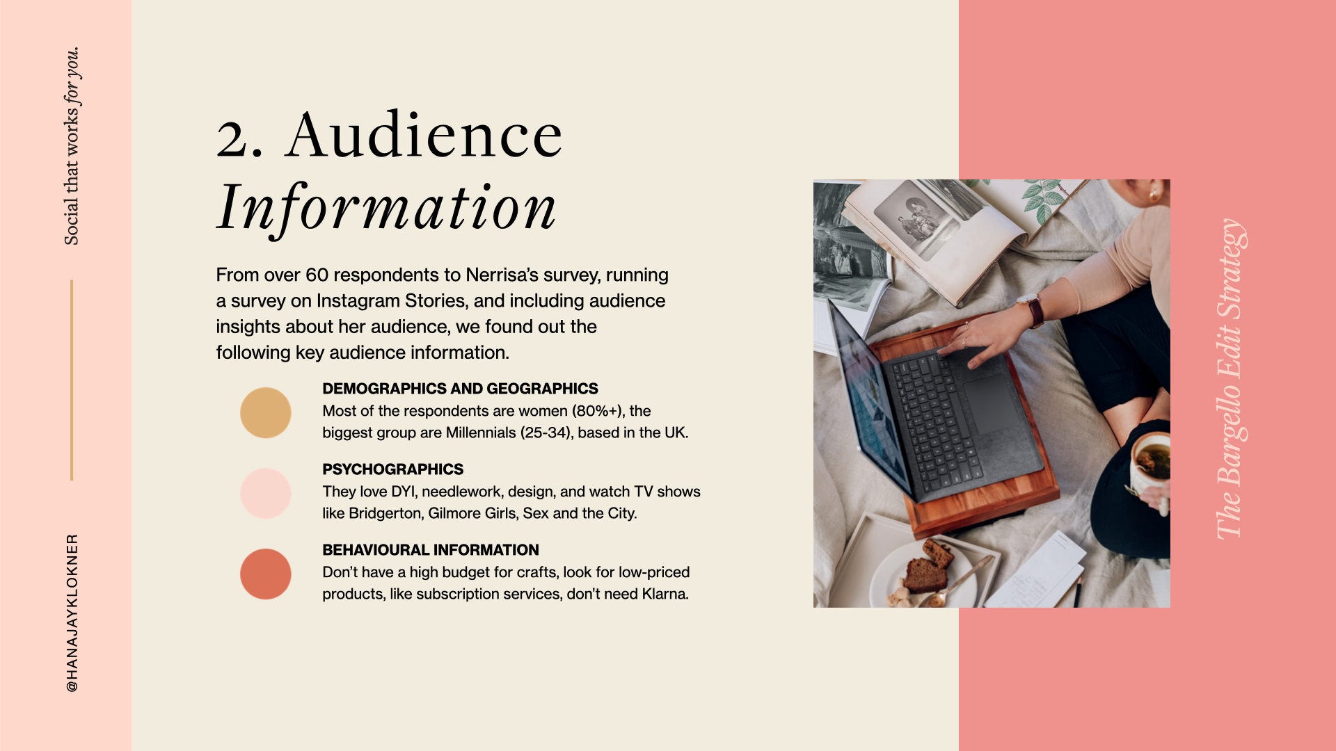 My dear Students, I'd like to share with you my Final Project for my course Social Media for Brand: Strategies to Stand Out Online. However, rather than showing you the Final Project and the results only, I'd like to show you the whole process that led me to creating content for Nerissa's brand, The Bargello Edit. So, please follow the photos and captions to see the "science and art" behind Nerrisa's campaign.