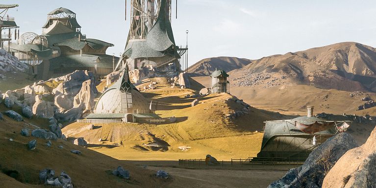• White Sand Oasis. Matte Painting, ArchVIZ, and Concept Art project by Carles Marsal - 01.01.2018