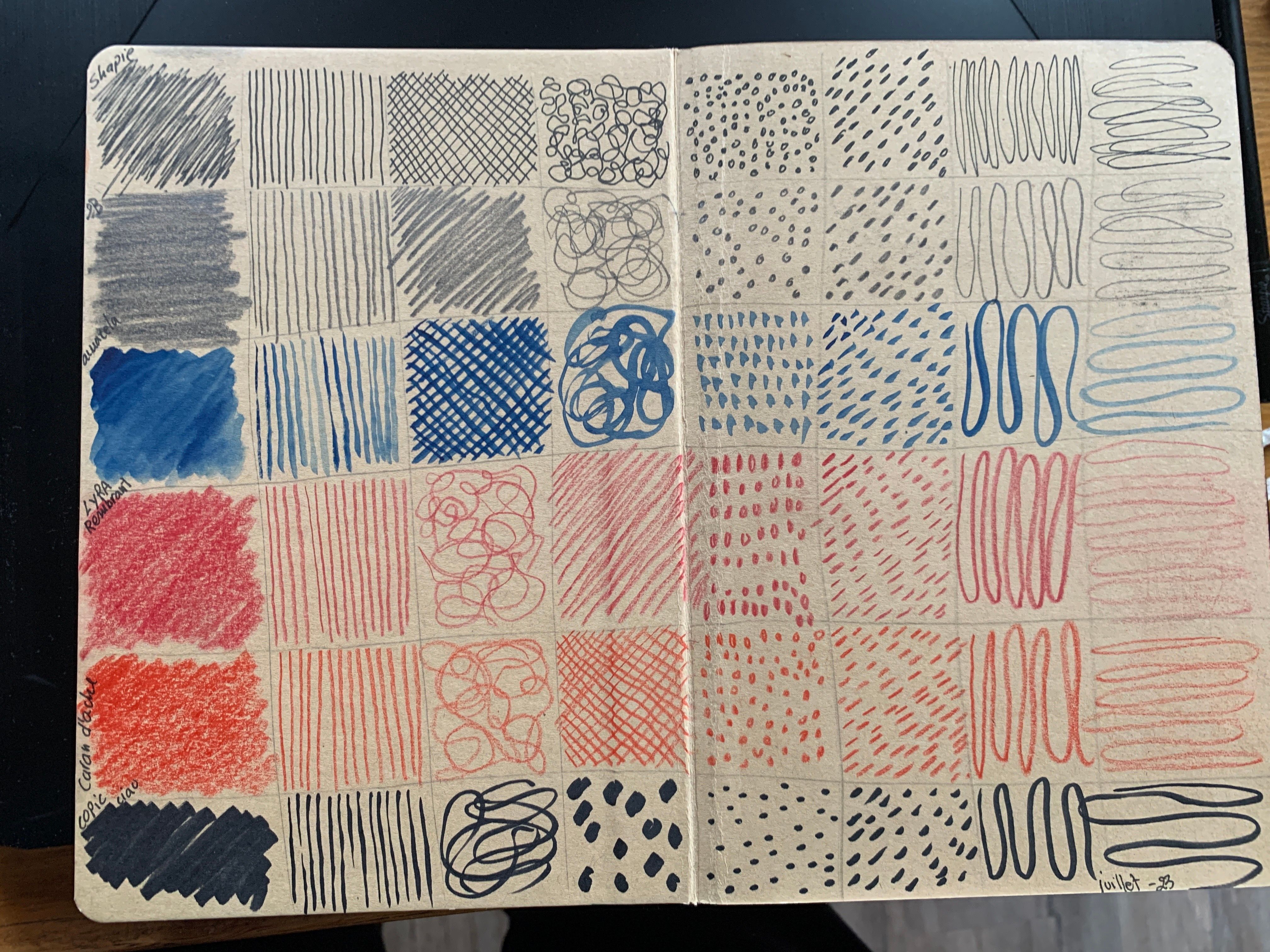 Nice work! I love all the experimentation with colour and textures. Every page looks interesting - although maybe you could have had more fun with the first mark making page? I wonder how you would use these exercises in your own work (with a reference).