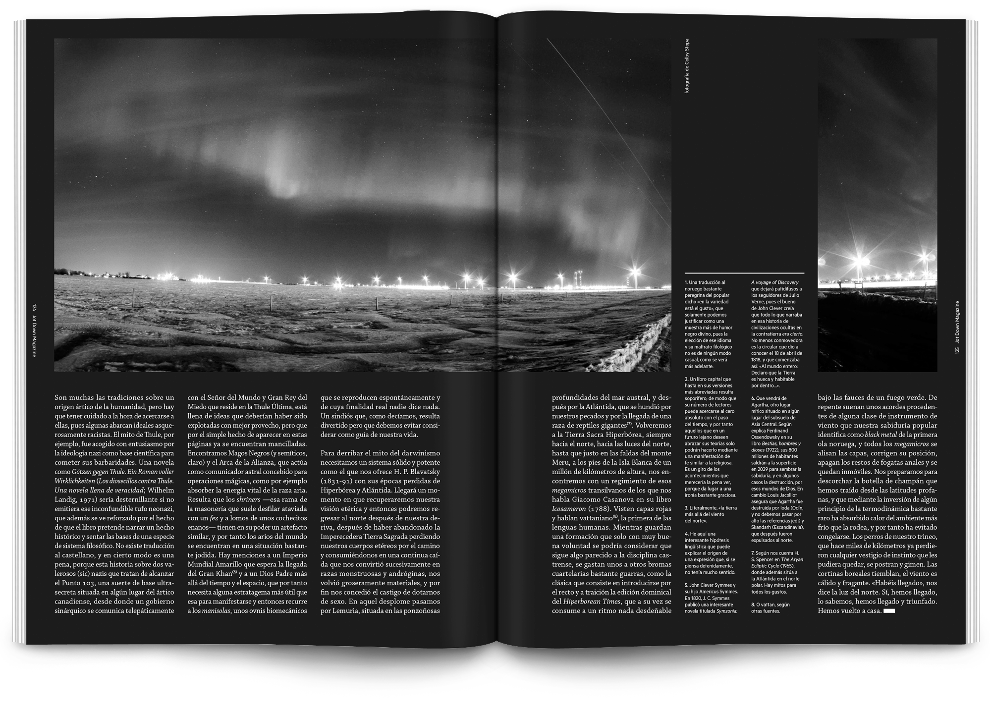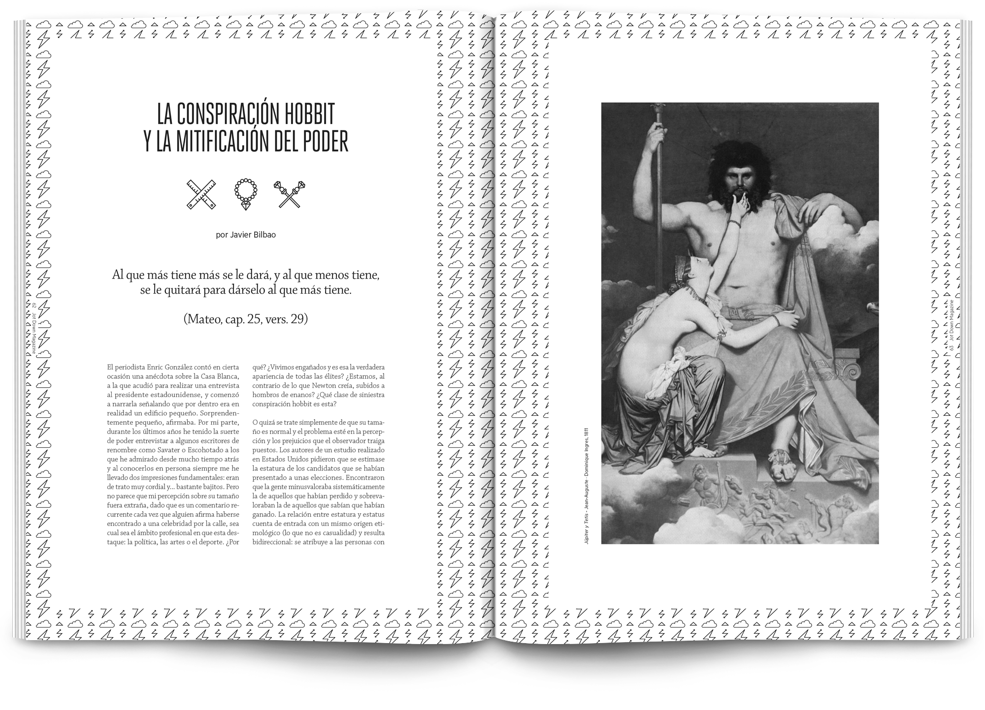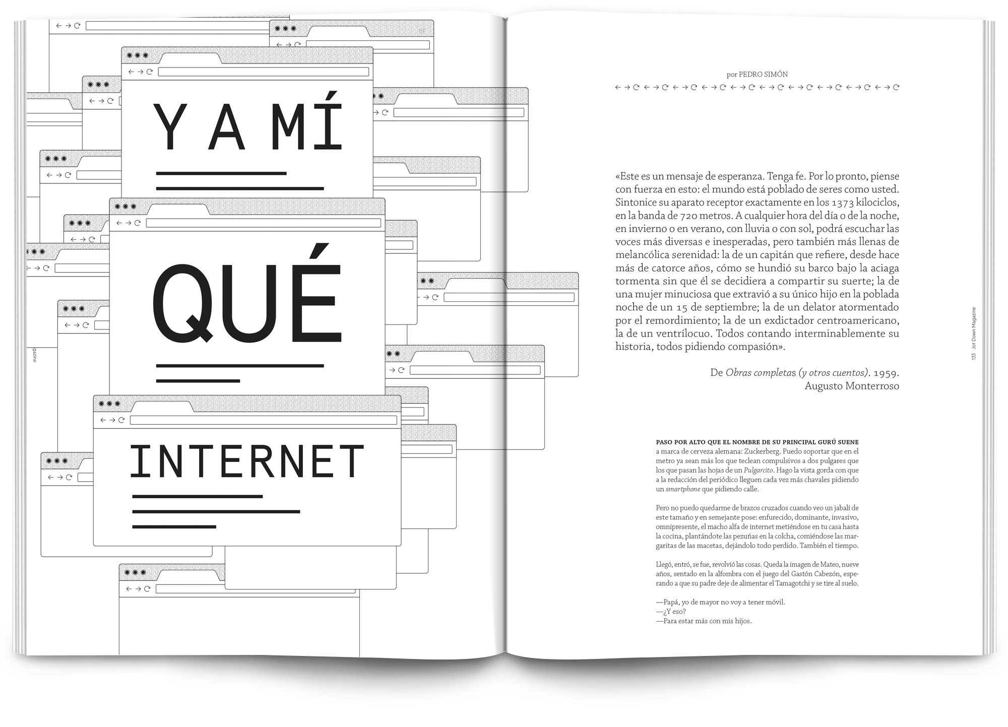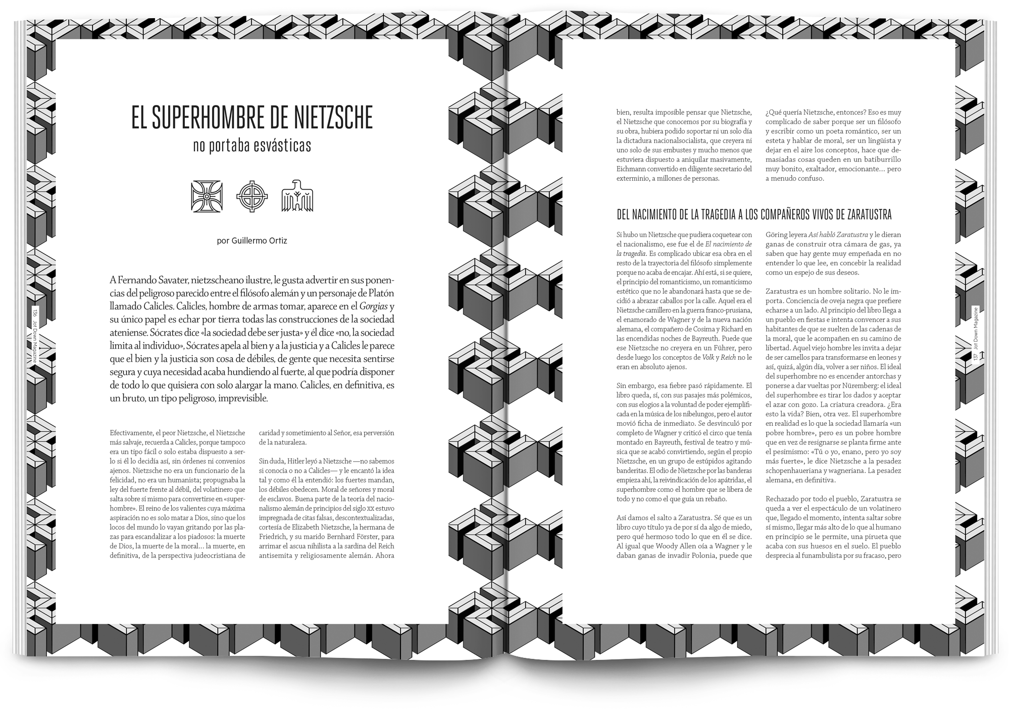 Todo el proyecto está desarrollado en blanco y negro, el texto en sí es el elemento principal y el tratamiento tipográfico pasa por la realización de letterings personalizados para los artículos más destacados de cada número.