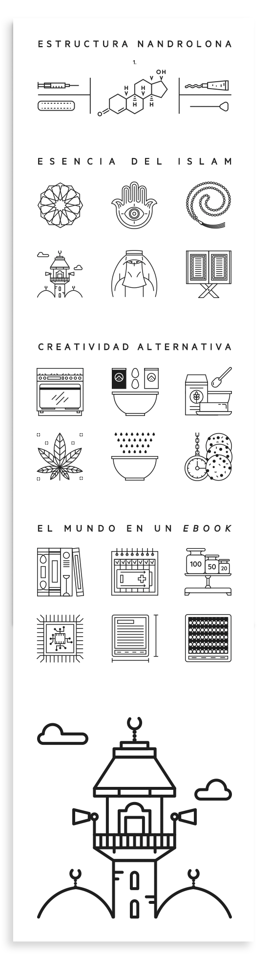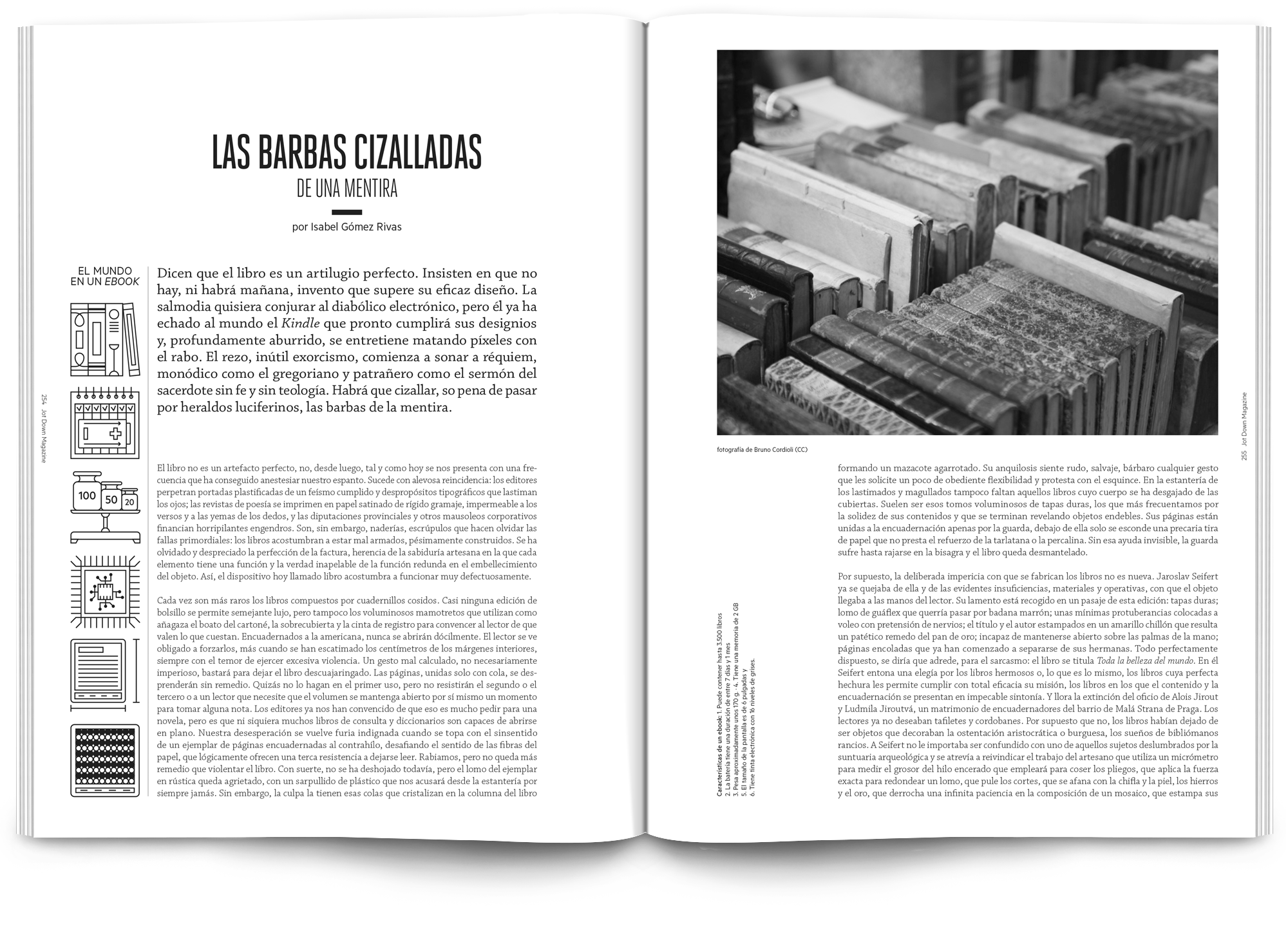 Nuestro desarrollo editorial nos ha empujado a elegir un estilo minimalista y limpio que facilitara la lectura al usuario final, enriqueciendo la composición de cada artículo con pequeñas infografías introductoras, iconografías, texturas y otros elementos gráficos que puediesen amenizar el ritmo de la revista.
