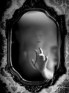 Vicente, totalmente trastornado, escuchaba como el espejo lo llamaba cada vez más. La sangre en él estaba completamente adherida y ya era imposible limpiarlo. Pero había una mancha que parecía provenir del otro lado y poco a poco no solo asomaba una sonriente Paola, sino que Victoria la acompañaba.