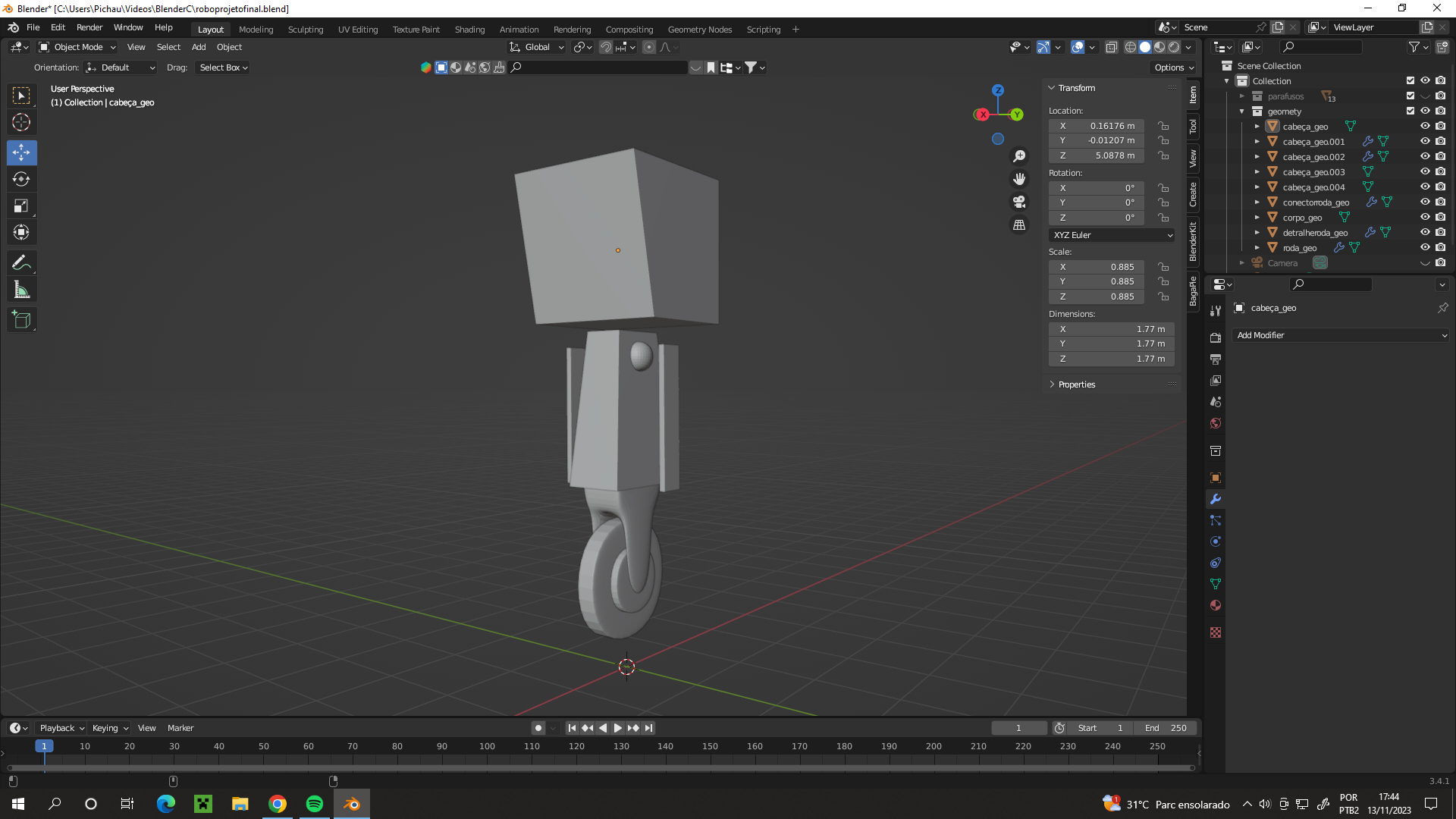 Meu projeto do curso: Introdução ao design 3D e modelagem com Blender