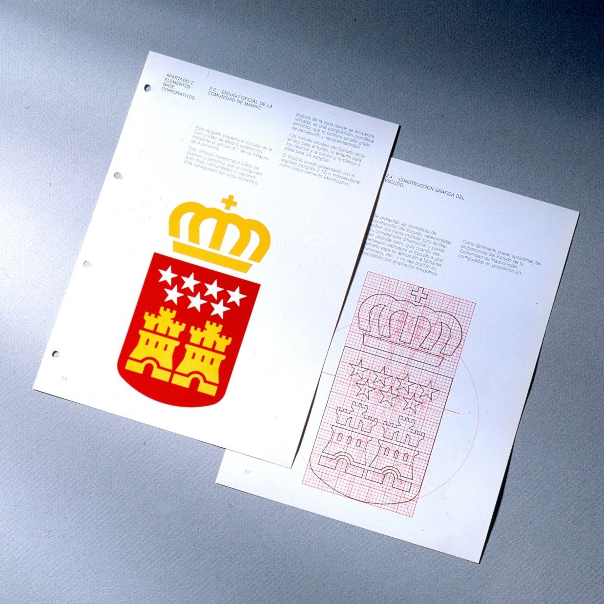 Diseño de la bandera y el escudo de la Comunidad de Madrid. Un proyecto amplio que incluyó un manual de identidad corporativa con las principales normas de implantación. Proyecto realizado en colaboración con el historiador y poeta Santiago Amón.