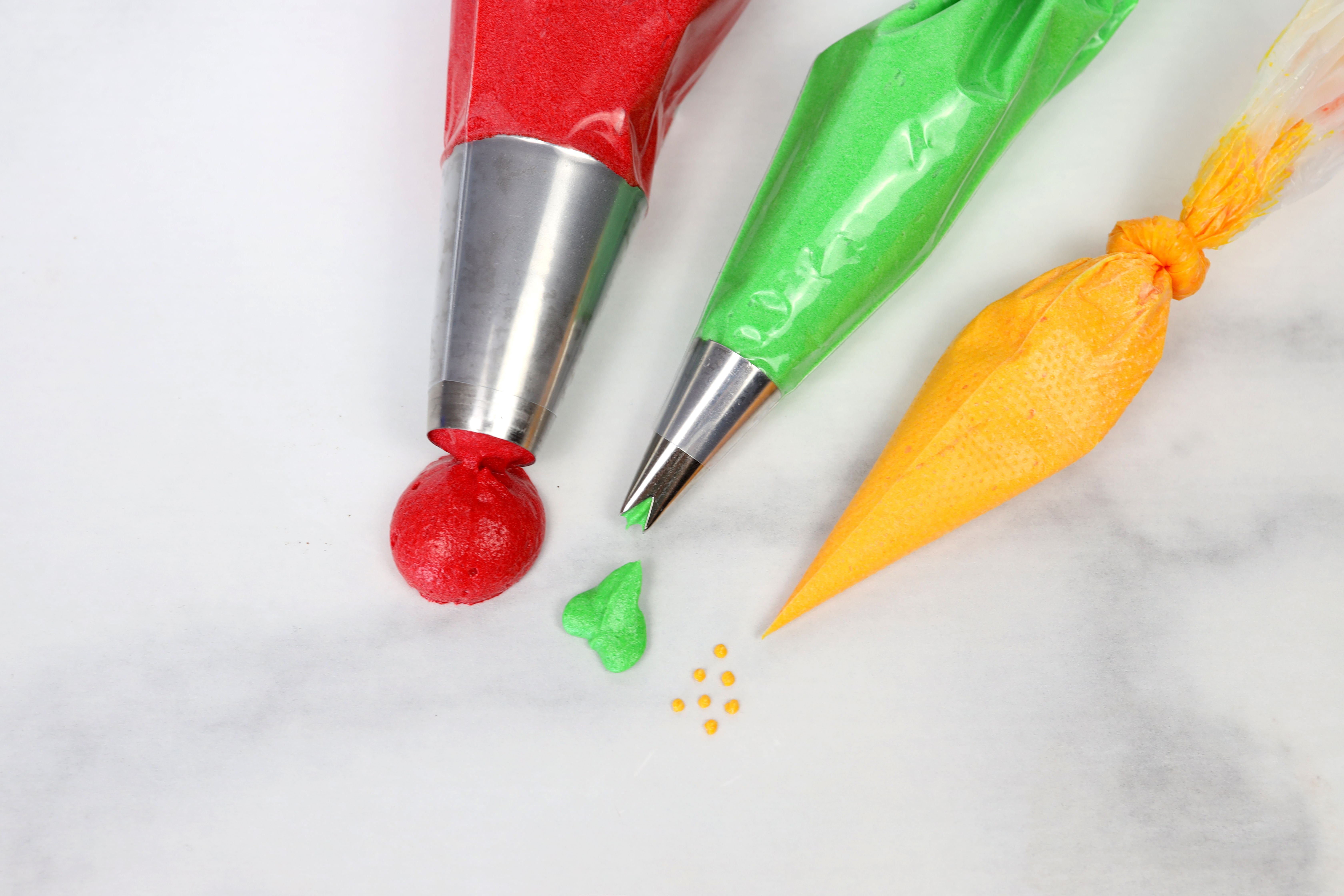 Finally, the step that took the most patience was adding all the tiny yellow seeds. I didn't use a piping tip for this part because I needed the tip opening to be so tiny!